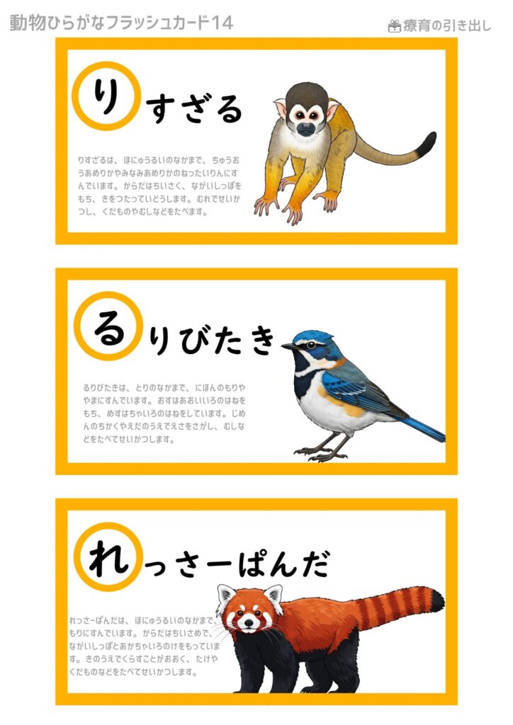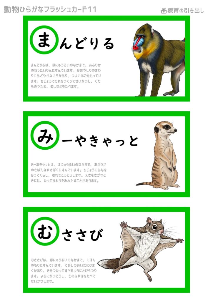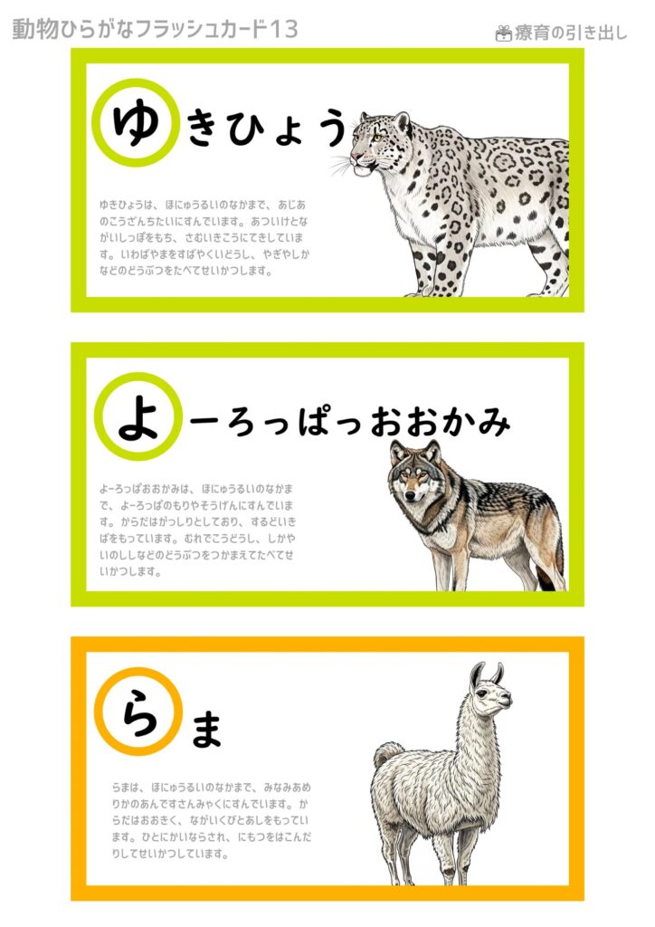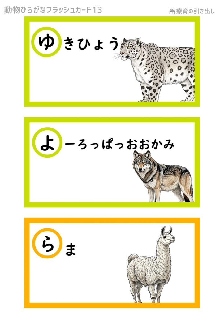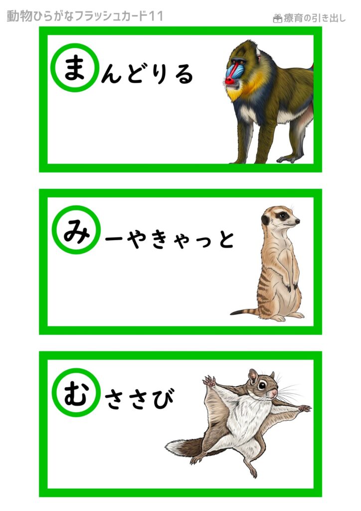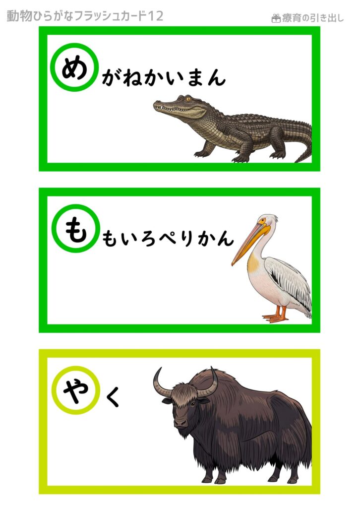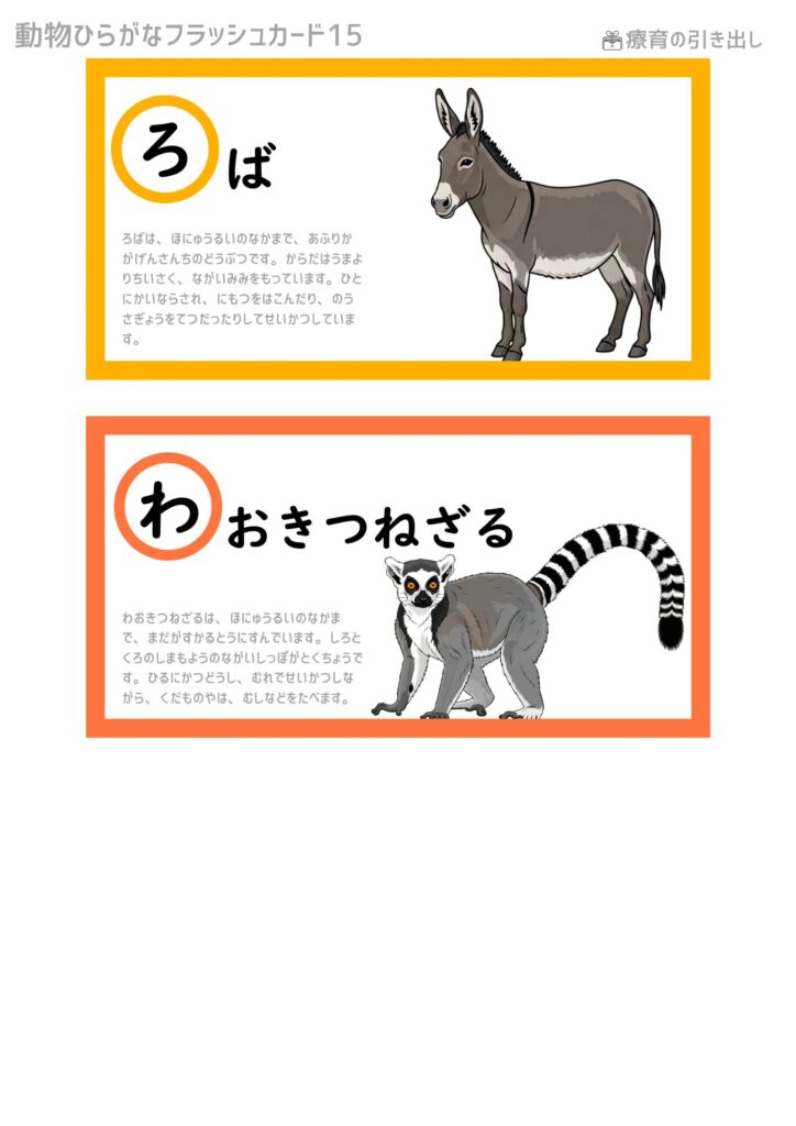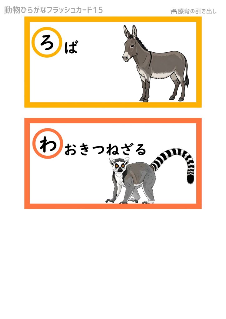 【ま・や・ら行わ】 動物ひらがなフラッシュカード [文字・国語]