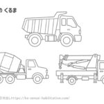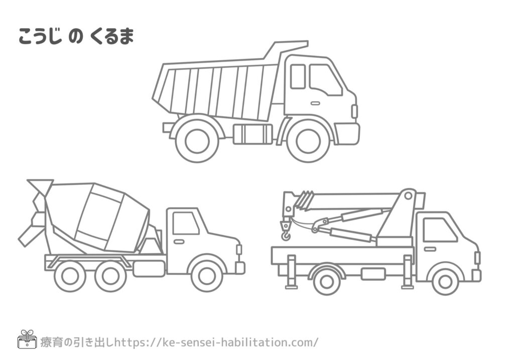 【ぬりえ】 のりもの 工事車両1 ダンプカー・ミキサー車・クレーン車