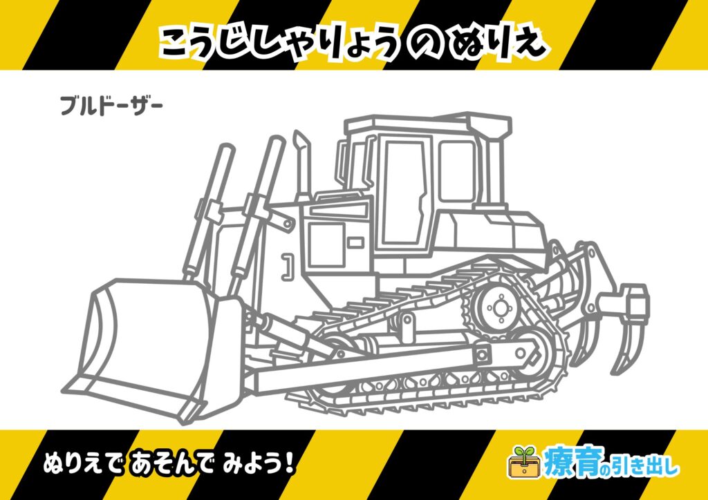 【ぬりえ】 のりもの 工事車両 リアル枠付き ブルドーザー