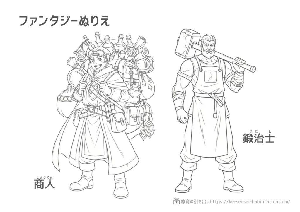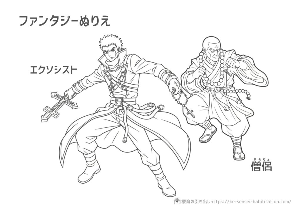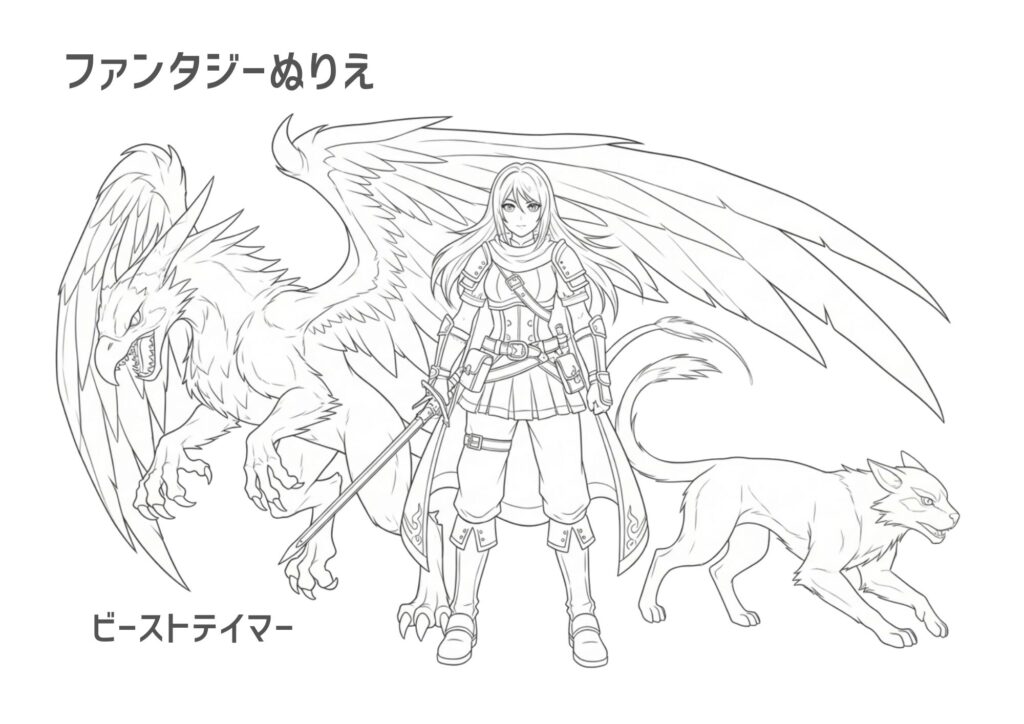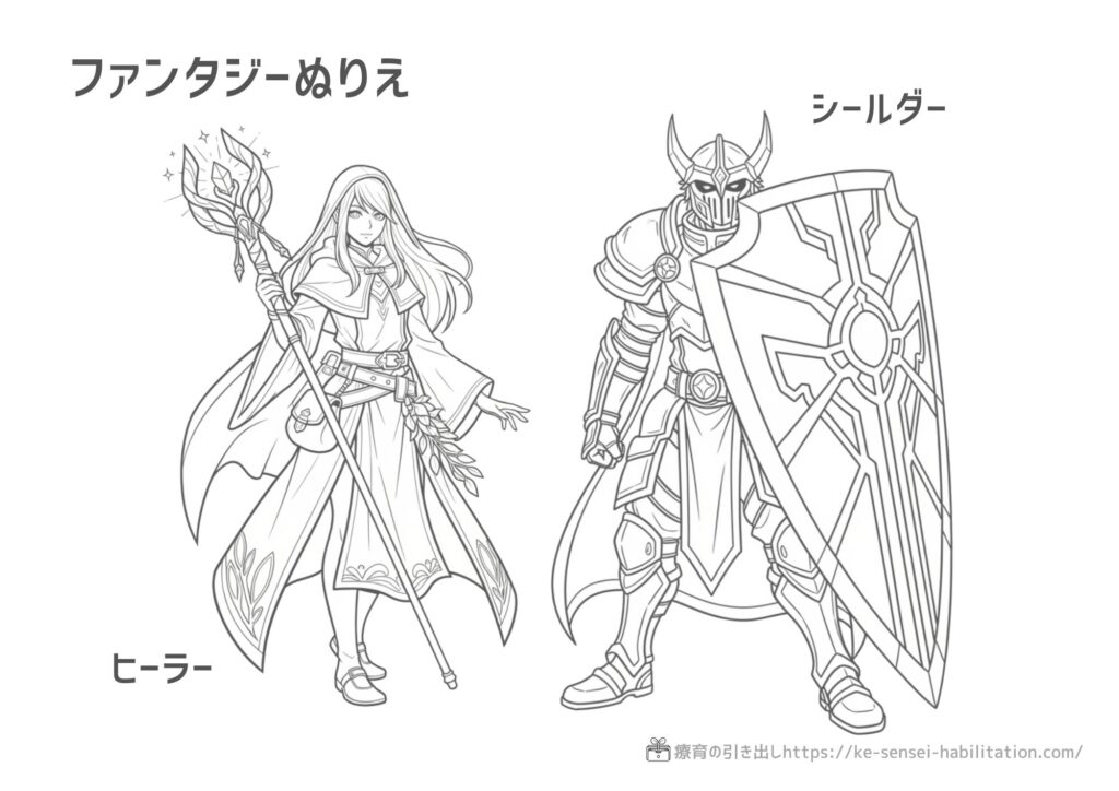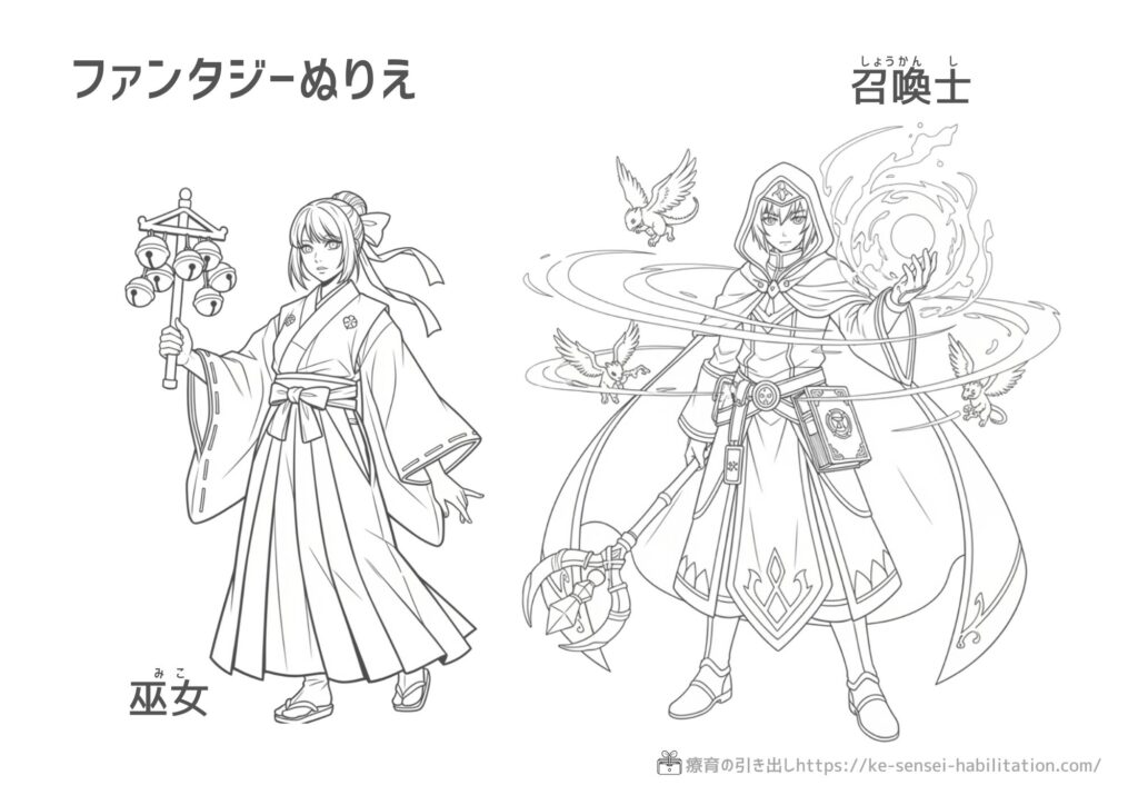 【ぬり絵】 ファンタジーキャラクターぬりえ