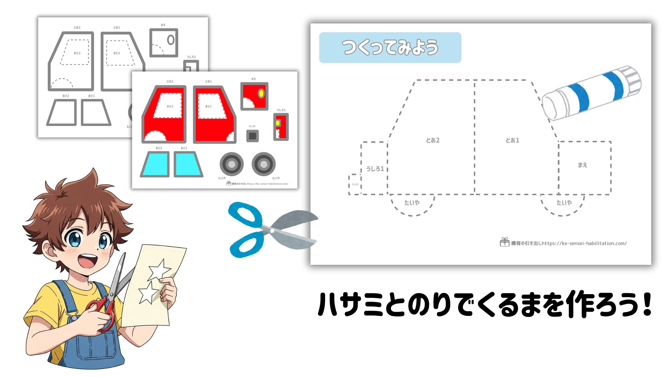 【はさみ・のり】 2Dペーパークラフト くるま (手先・道具の使い方)