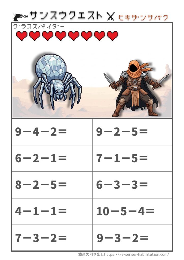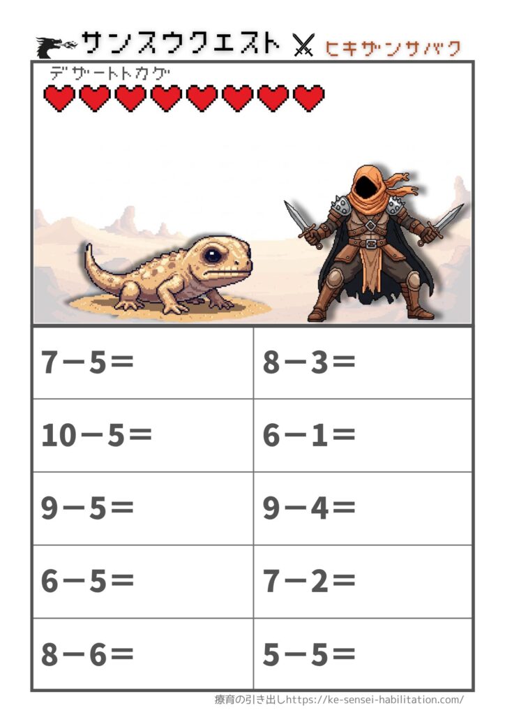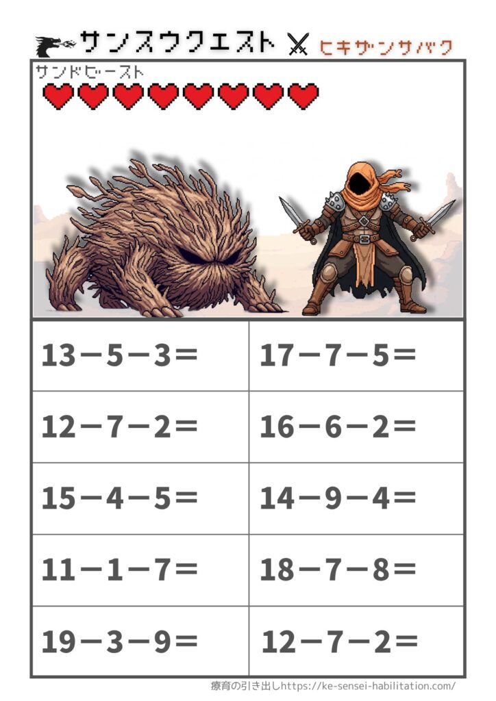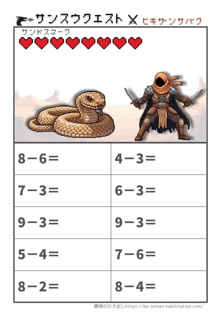 【ひきざん】 算数クエスト 引き算の砂漠 [数・算数]全27枚