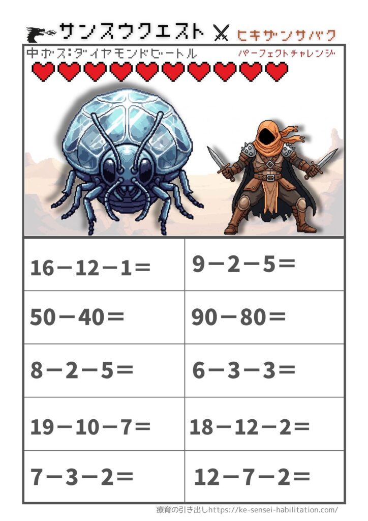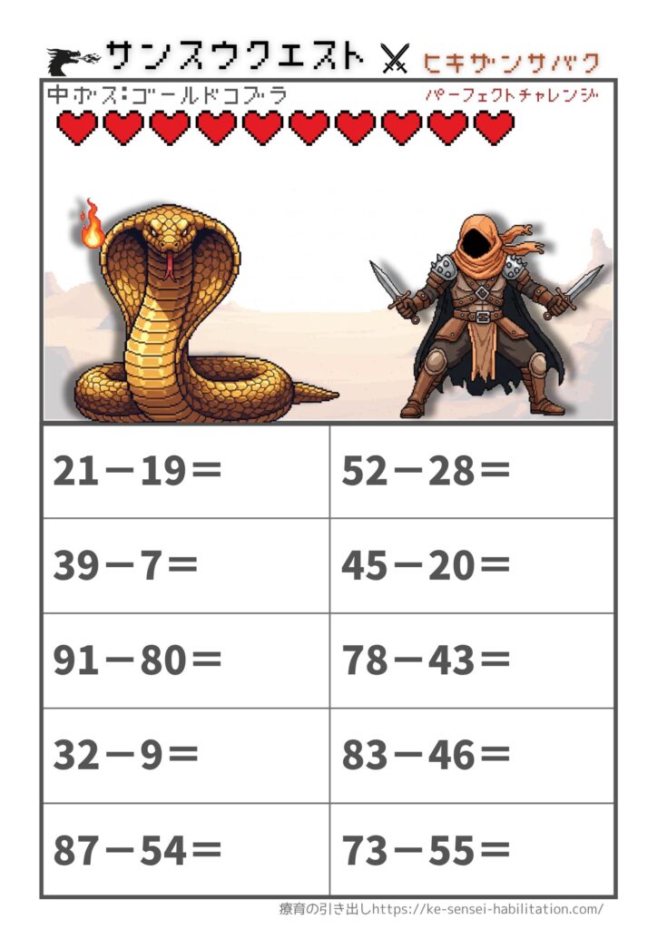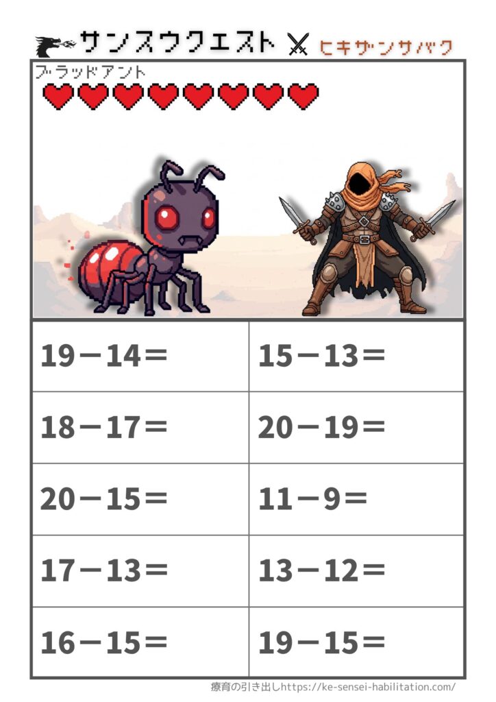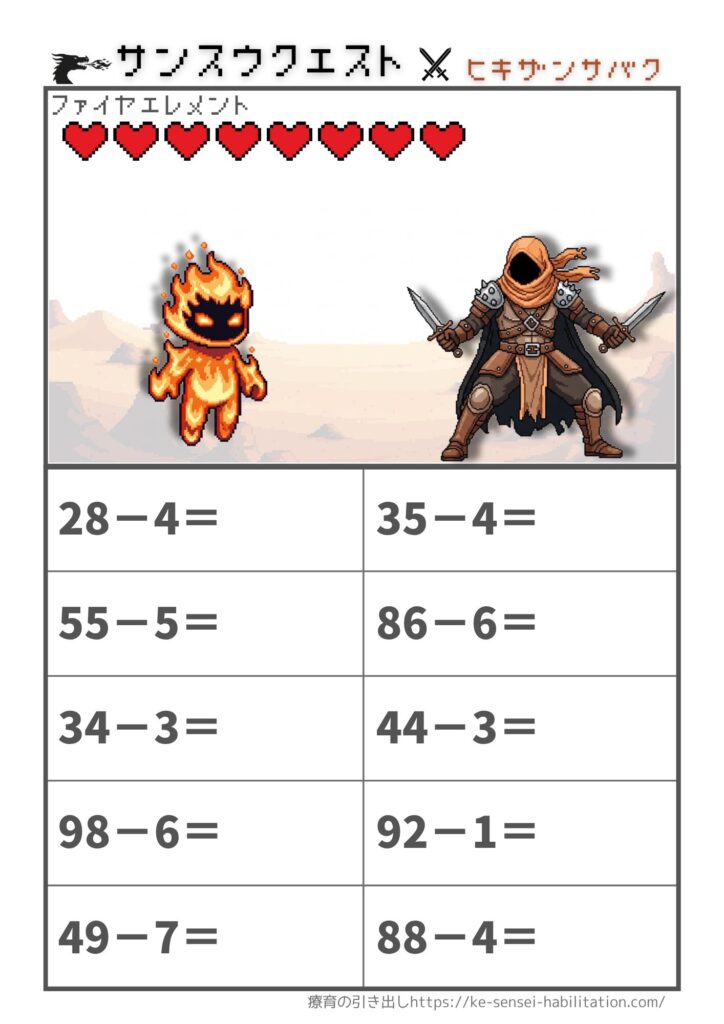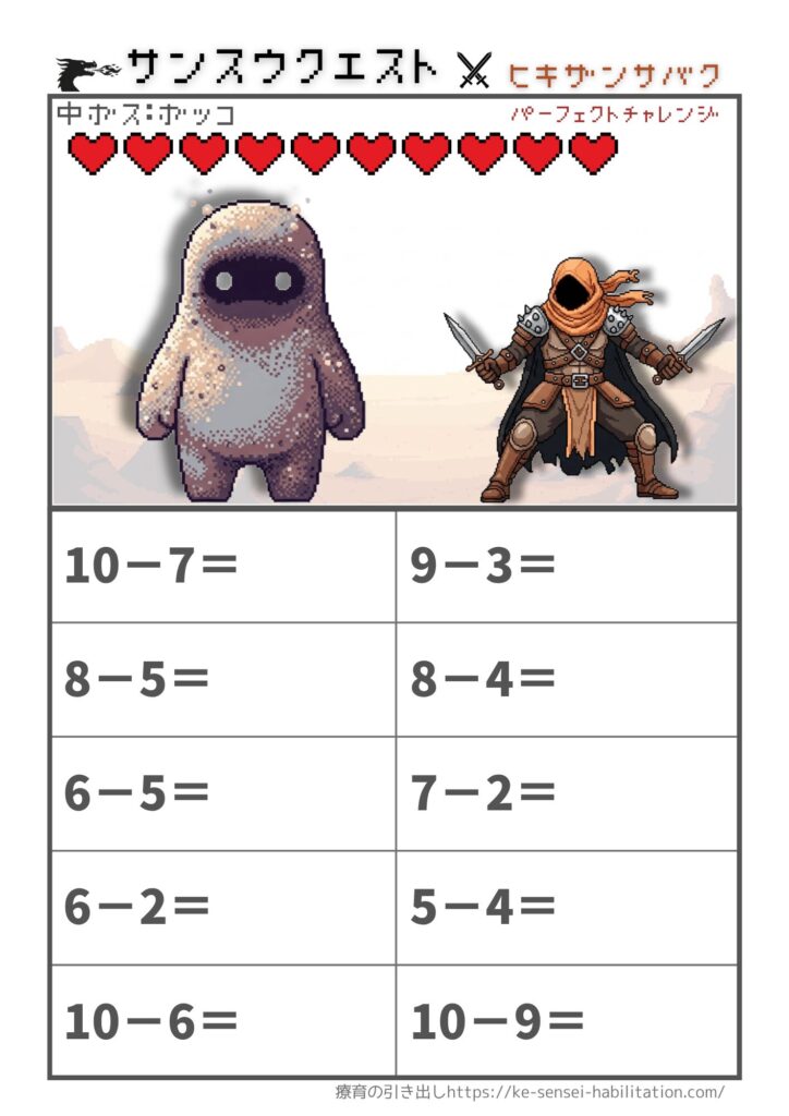 【ひきざん】 算数クエスト 引き算の砂漠 [数・算数]全27枚