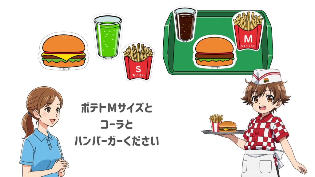 【やりとり】 ハンバーガー屋さん [言葉・やりとり] ごっこ遊びにも使いやすい汎用絵カード