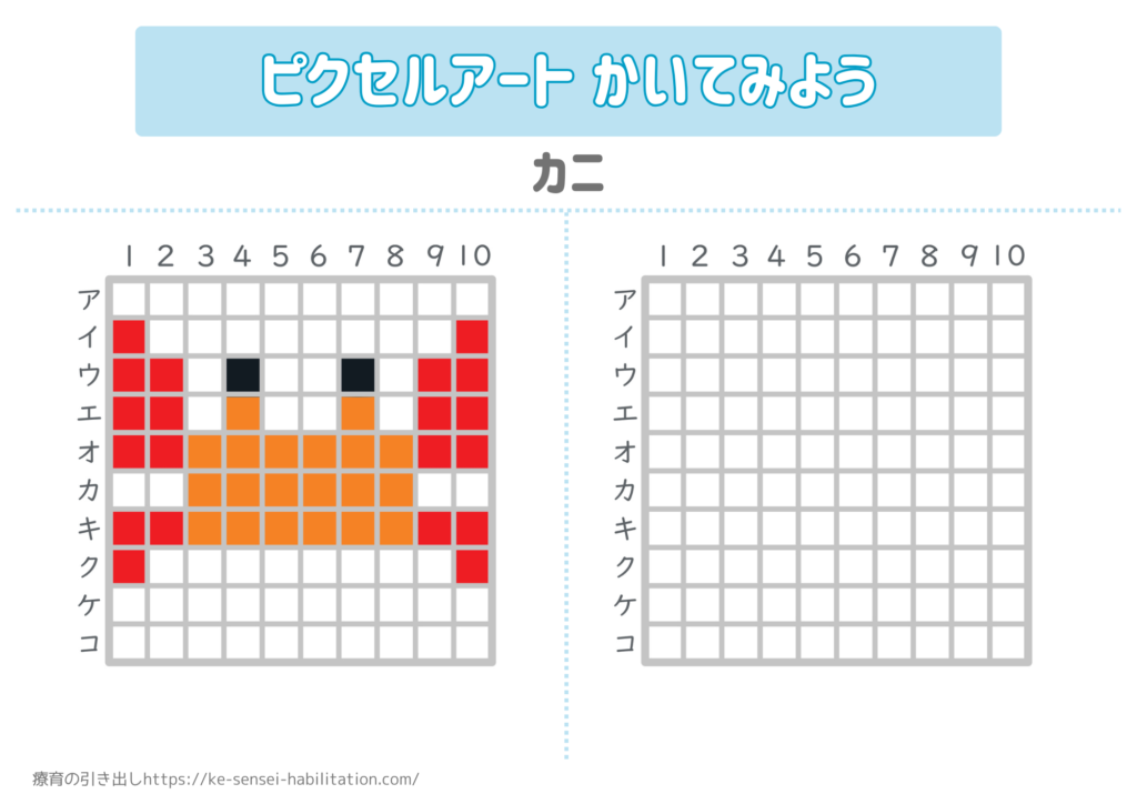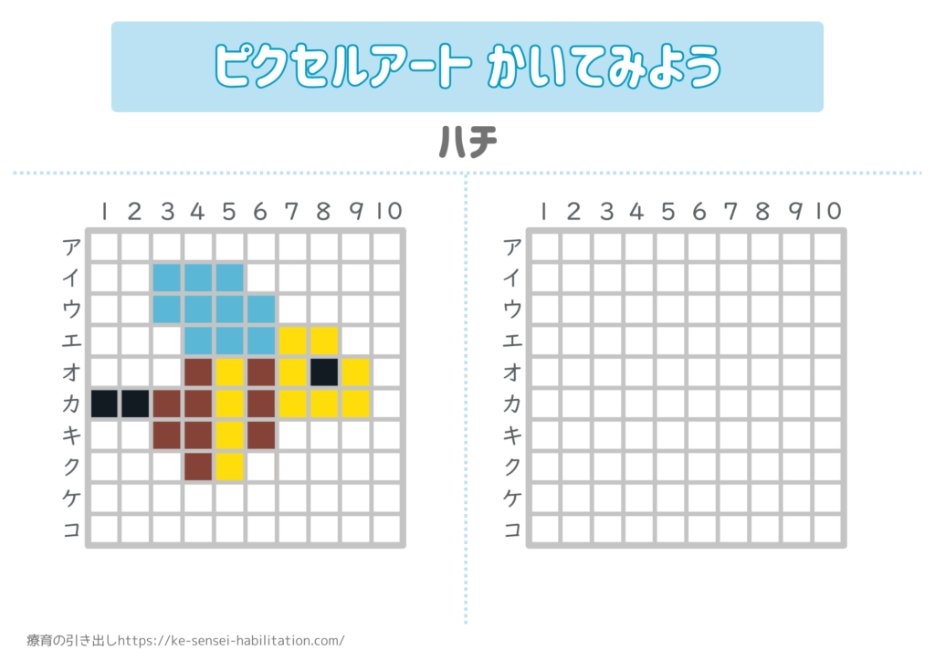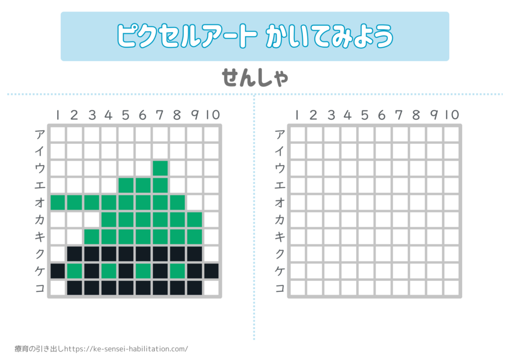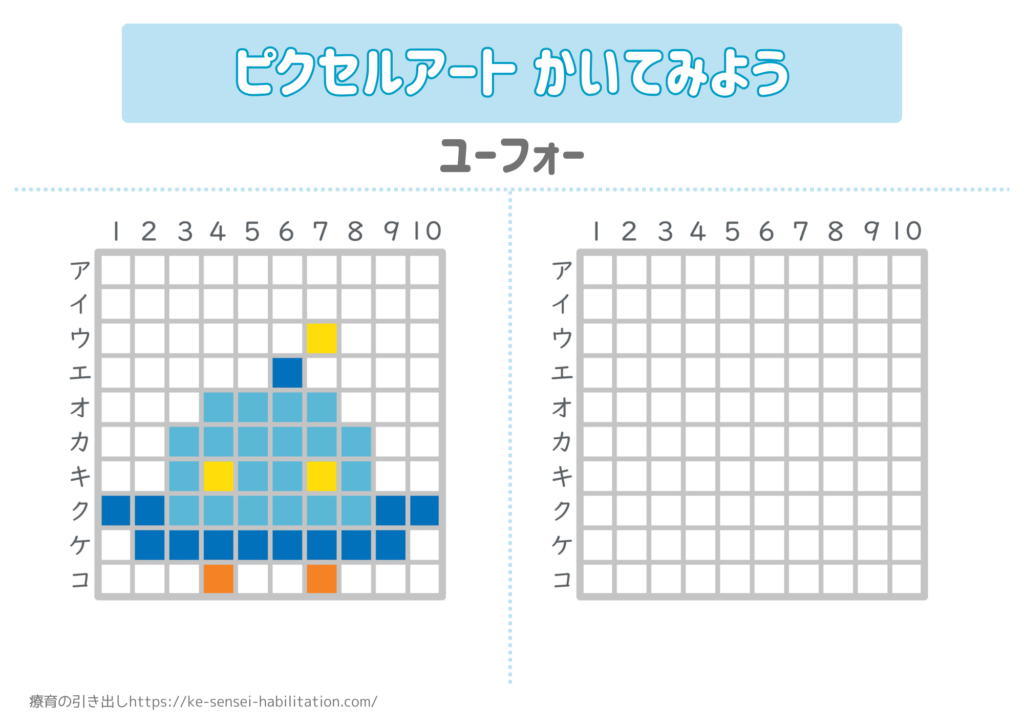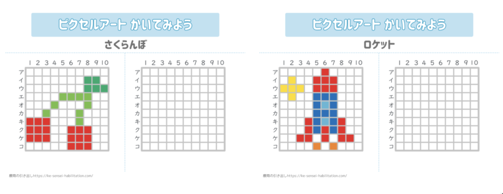 【ビジョントレーニング】 ピクセルアート描いてみよう [視覚トレ・聞き取り] 全18枚