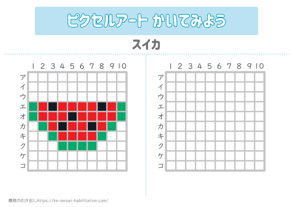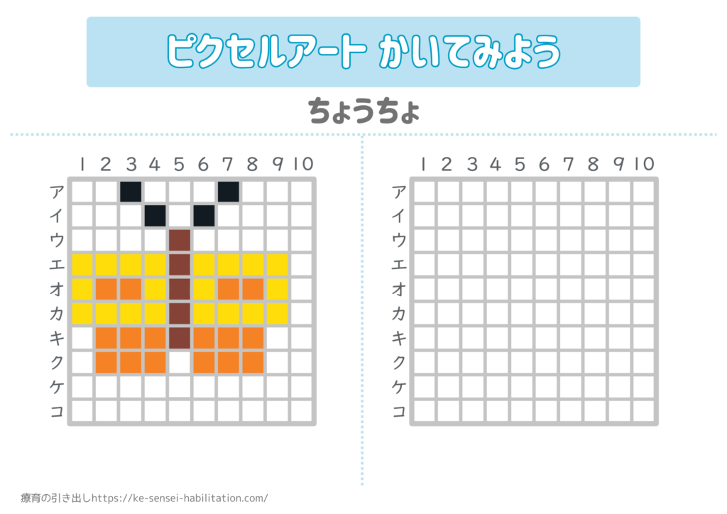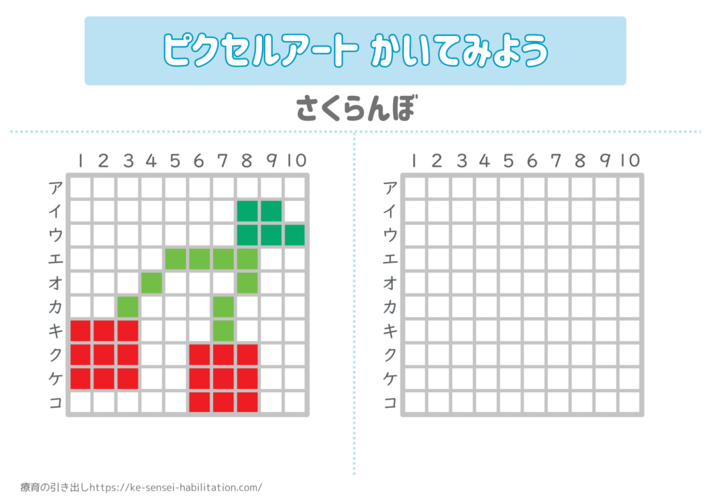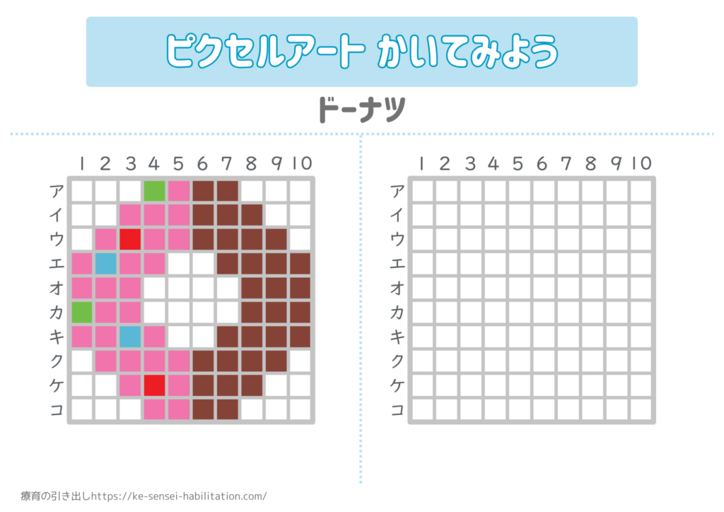 【ビジョントレーニング】 ピクセルアート描いてみよう [視覚トレ・聞き取り] 全18枚