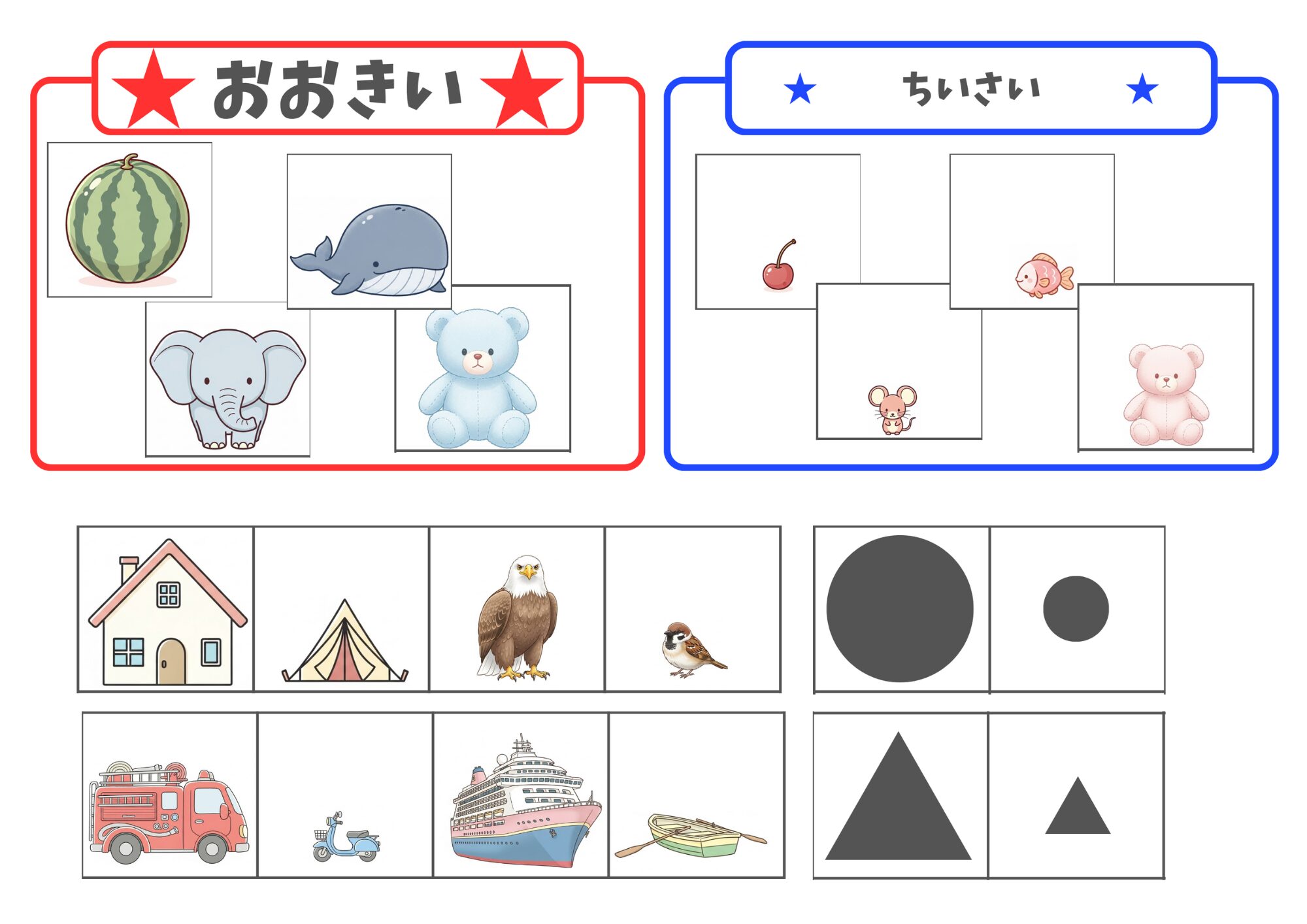 【療育教材】 大きい・小さい 分けるカード [言葉・やりとり]