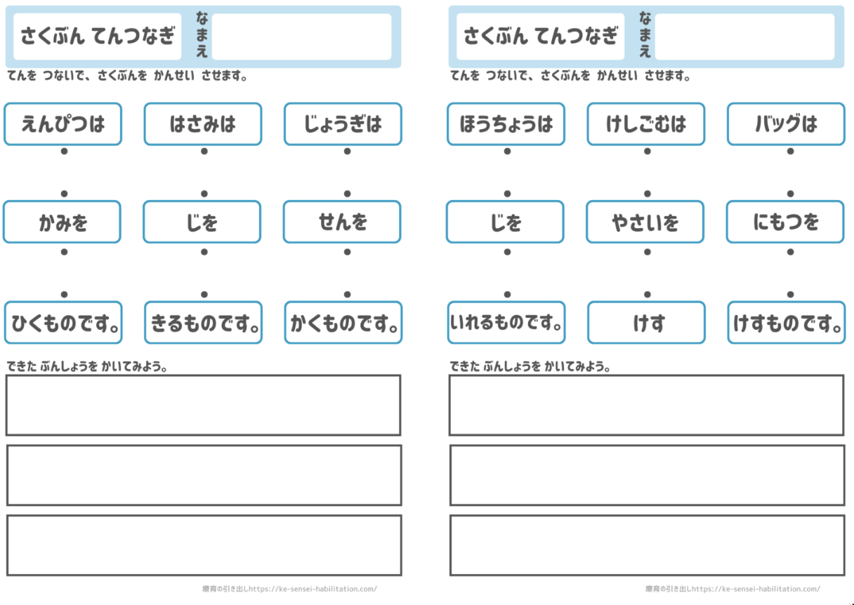 ご家庭・学校・児童発達支援・放課後等デイサービスでご自由にお使いいただけます。