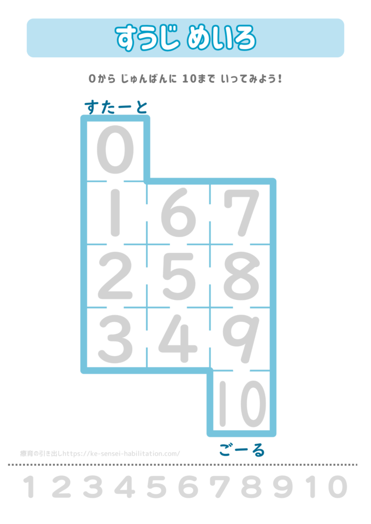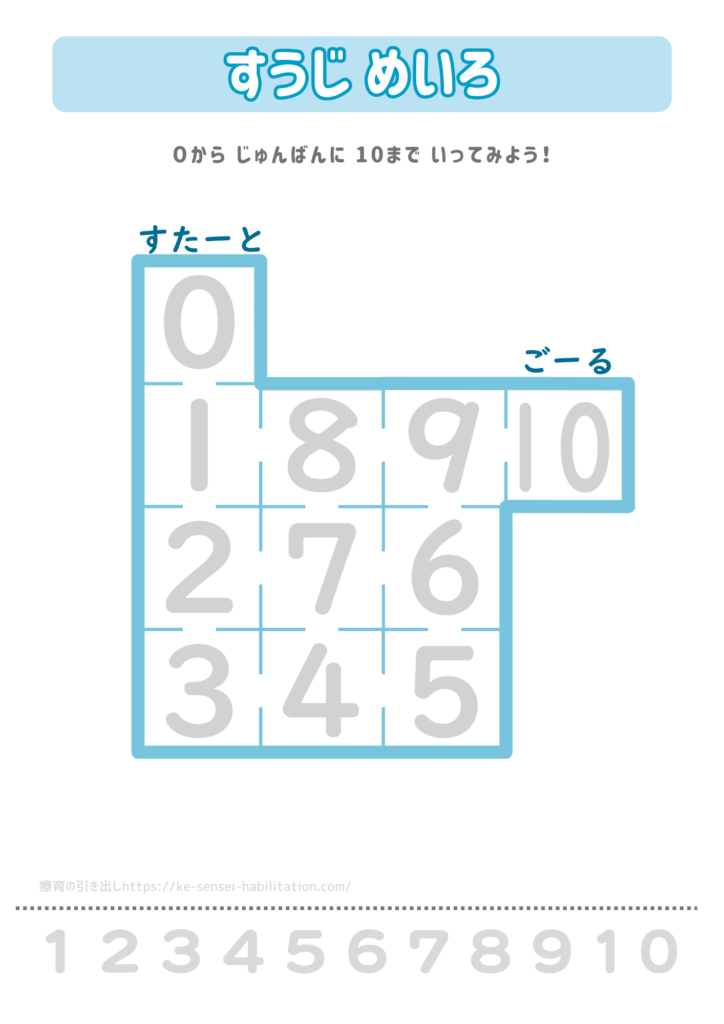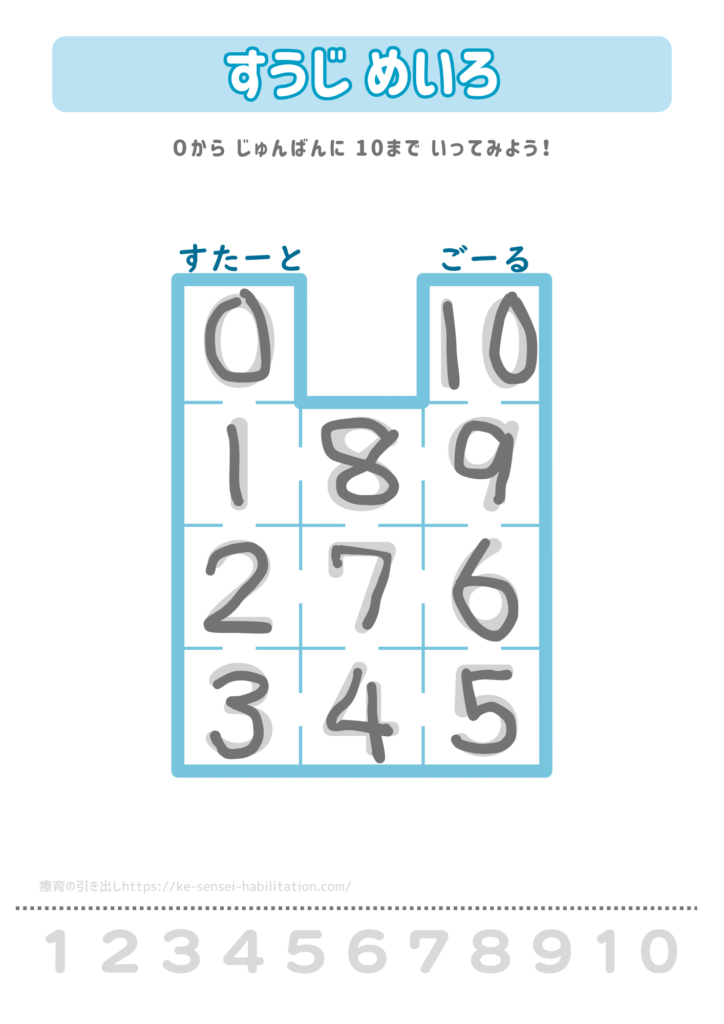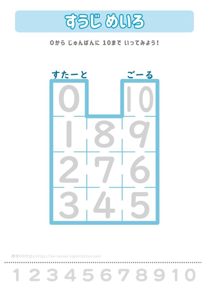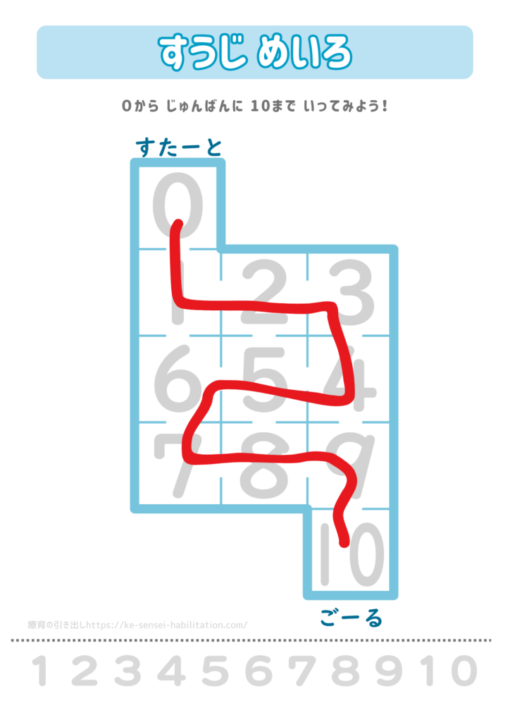 【数】 すうじめいろ 10まで 縦型 [数・算数] 全9枚