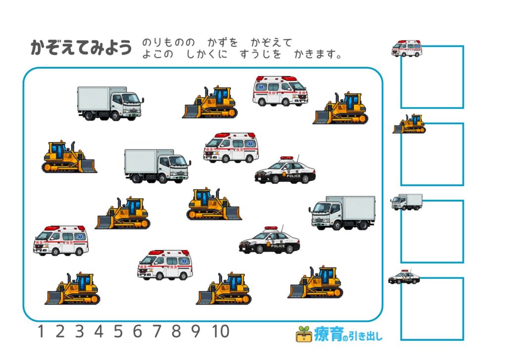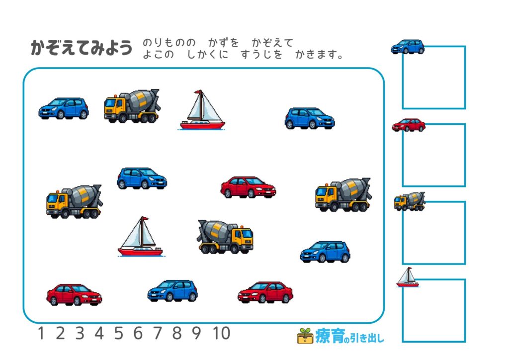 【数・注意】 のりものを数えよう [数・数字・注意・集中] 乗り物が好きな子にオススメ!