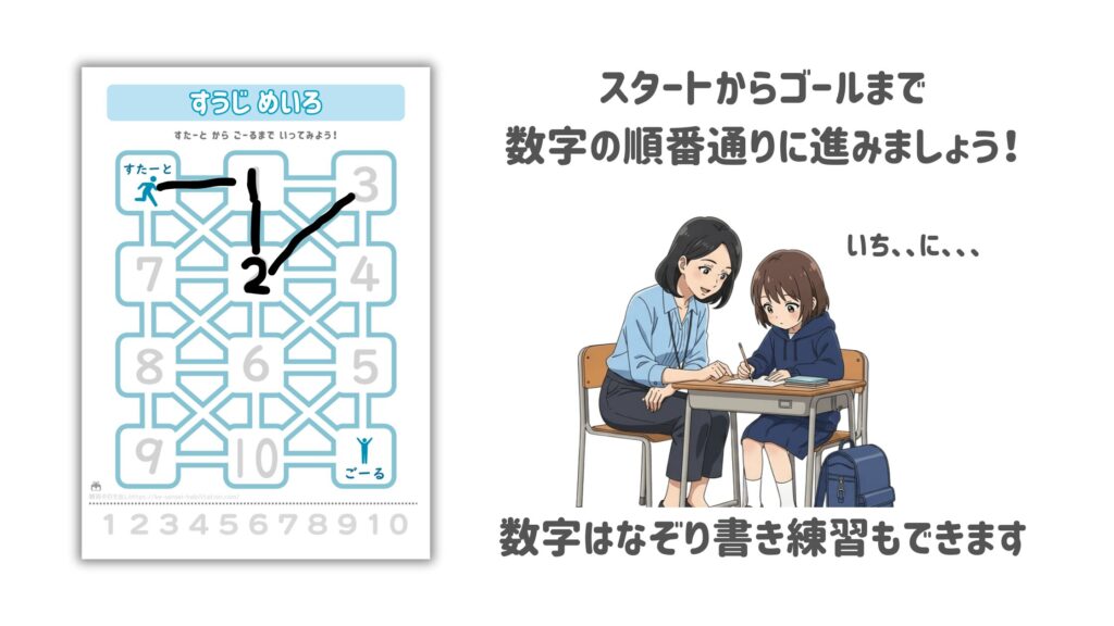 【数字】 数字めいろ 改 [数・数字] なぞり書きや運筆の練習にも!