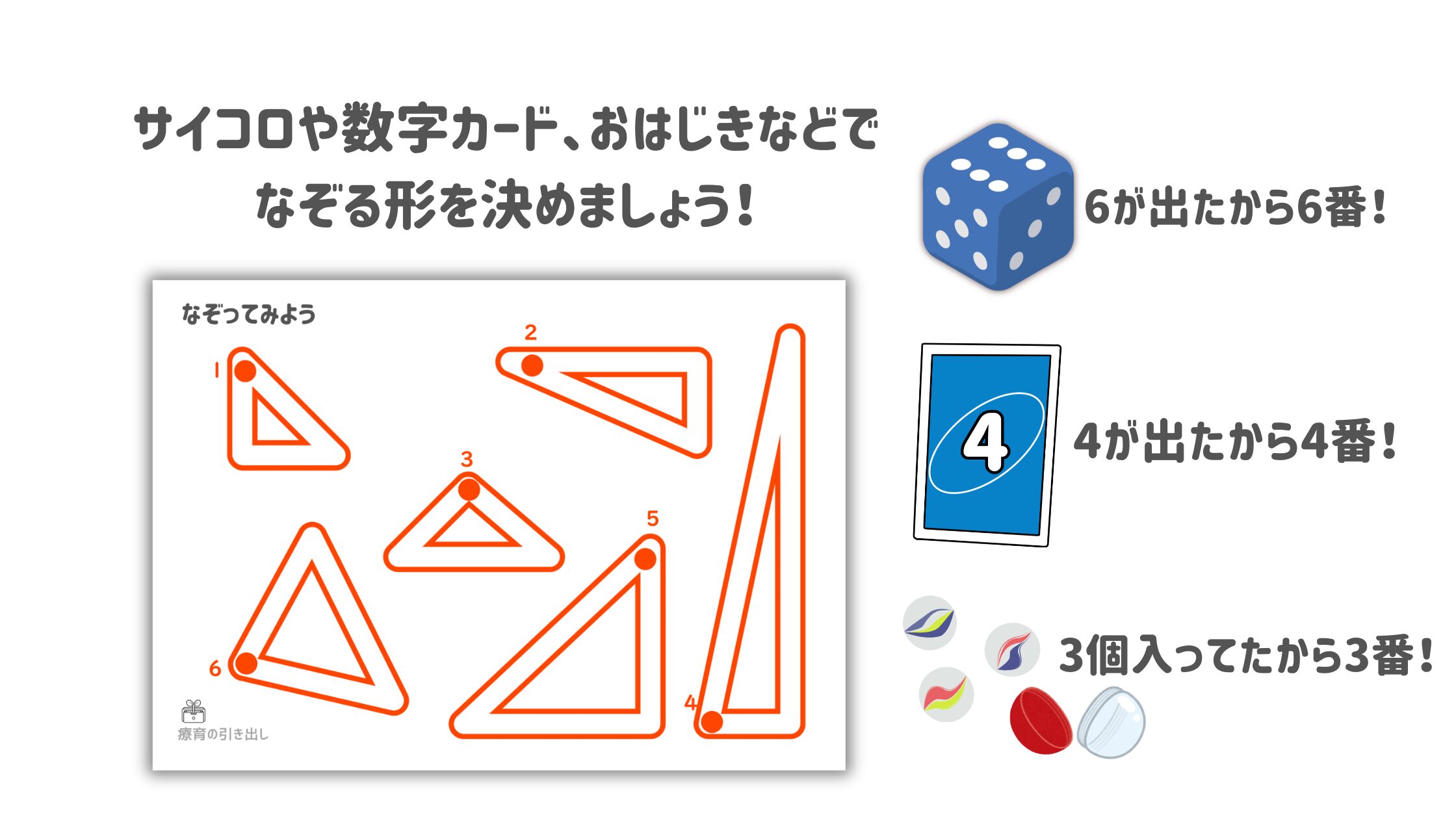 【数字×形なぞり】 なぞってみよう形 [運筆・数・数字] どの形をなぞるかは、出た数字で決まる!