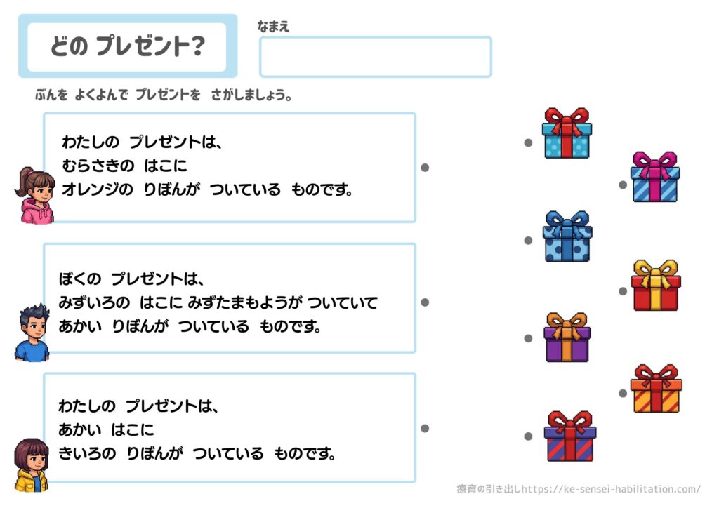 【文章読解】 どのプレゼント? [文字・国語] 全10枚