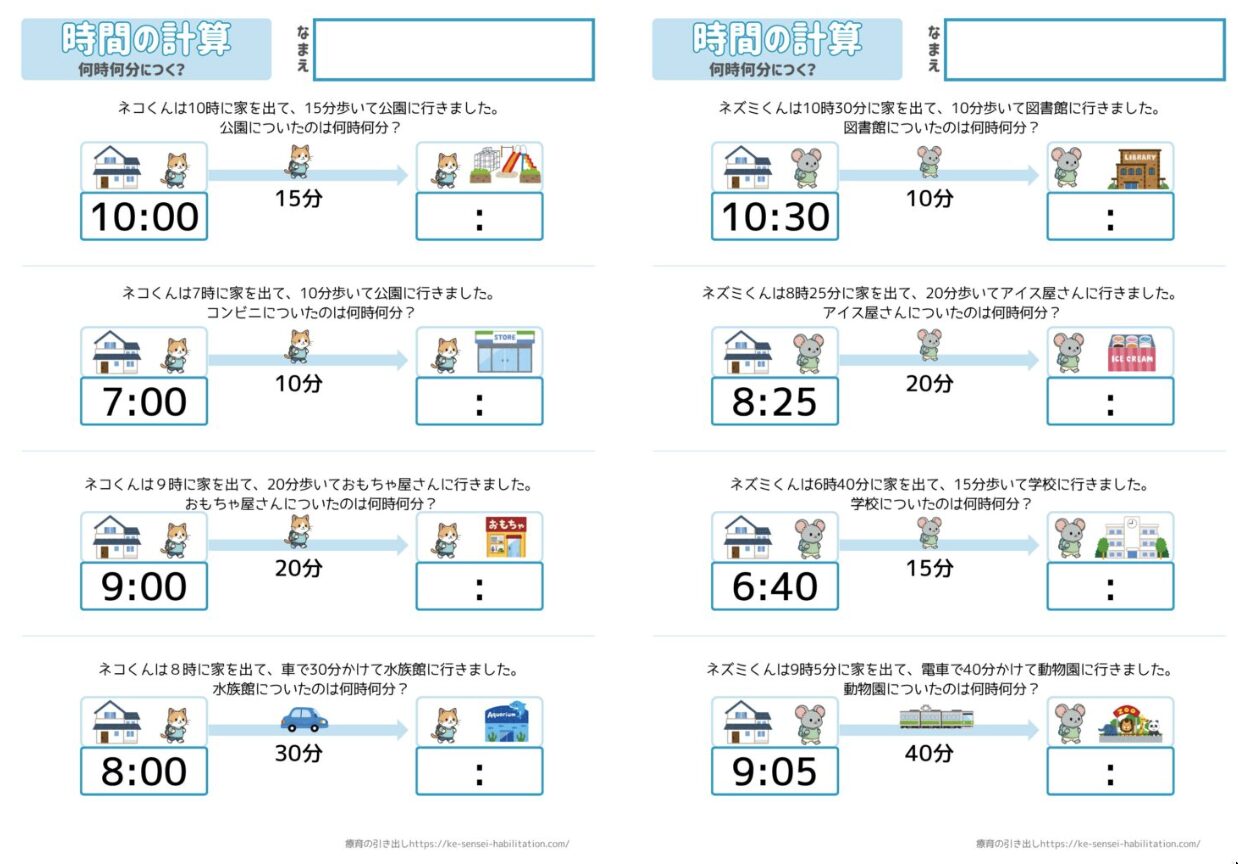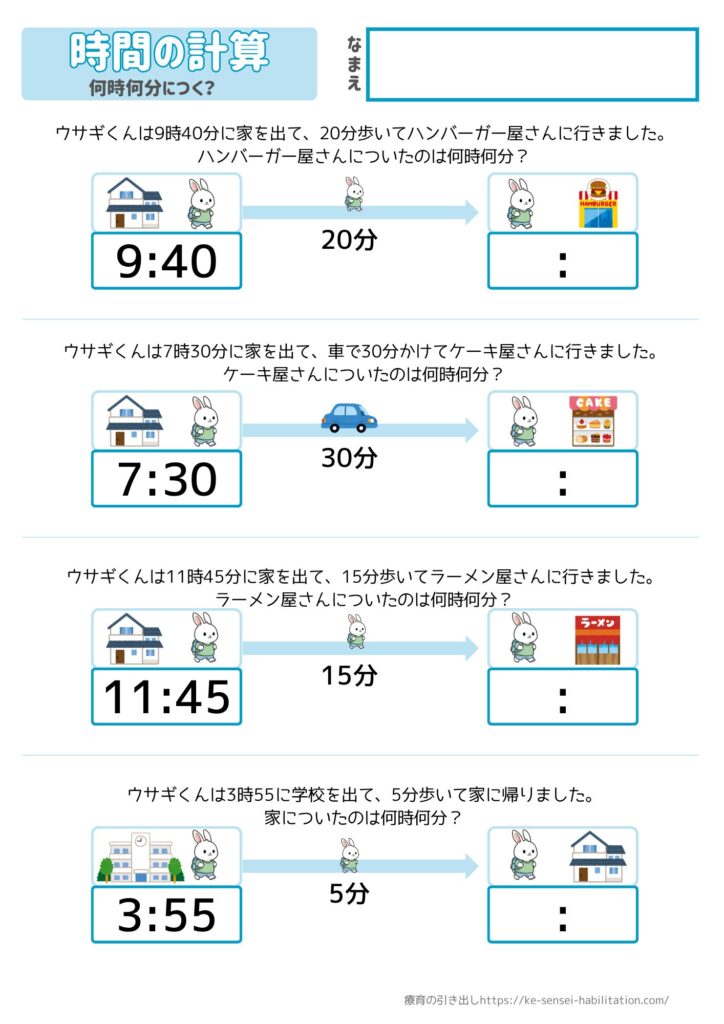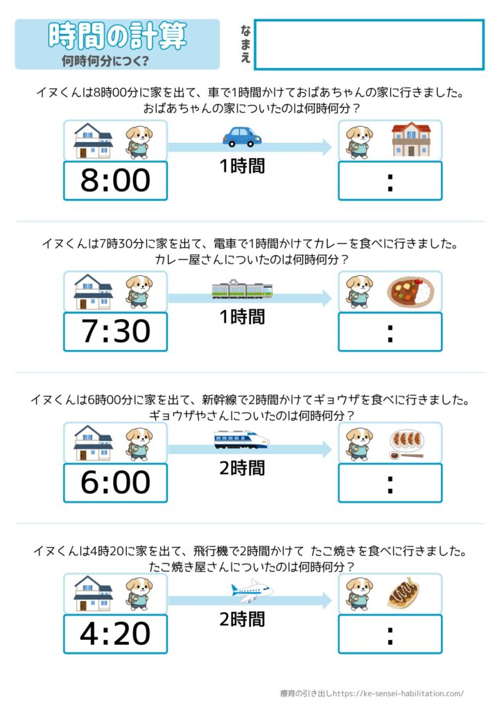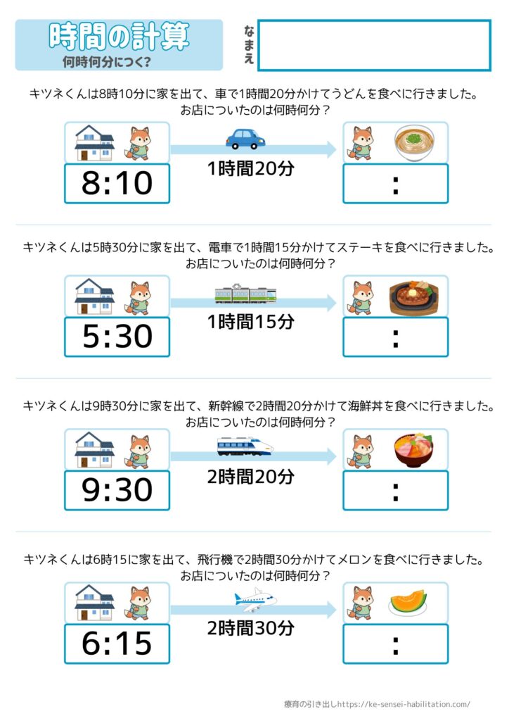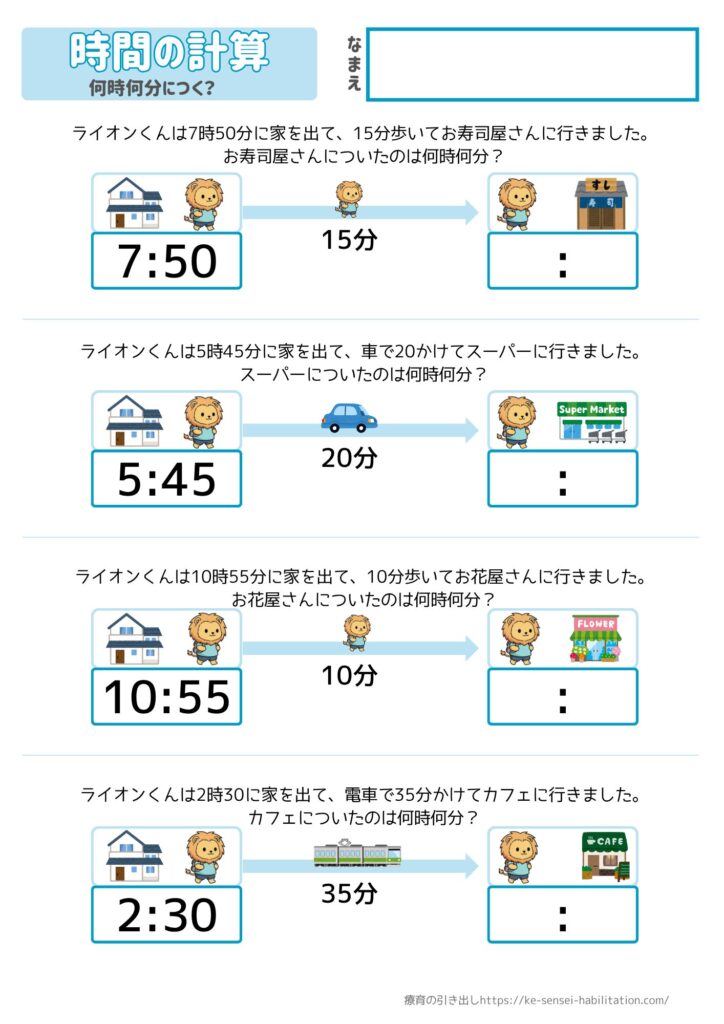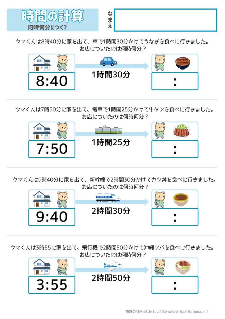 【時間の計算】 何時何分につく? [数・算数] 8枚