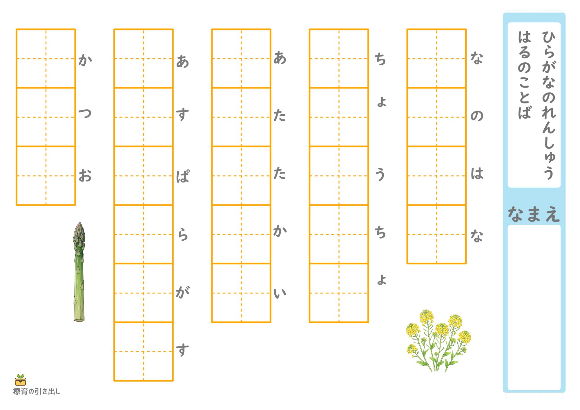 【季節の教材】 春の言葉でひらがな練習 [文字・言葉] 語彙力をつけながら平仮名練習