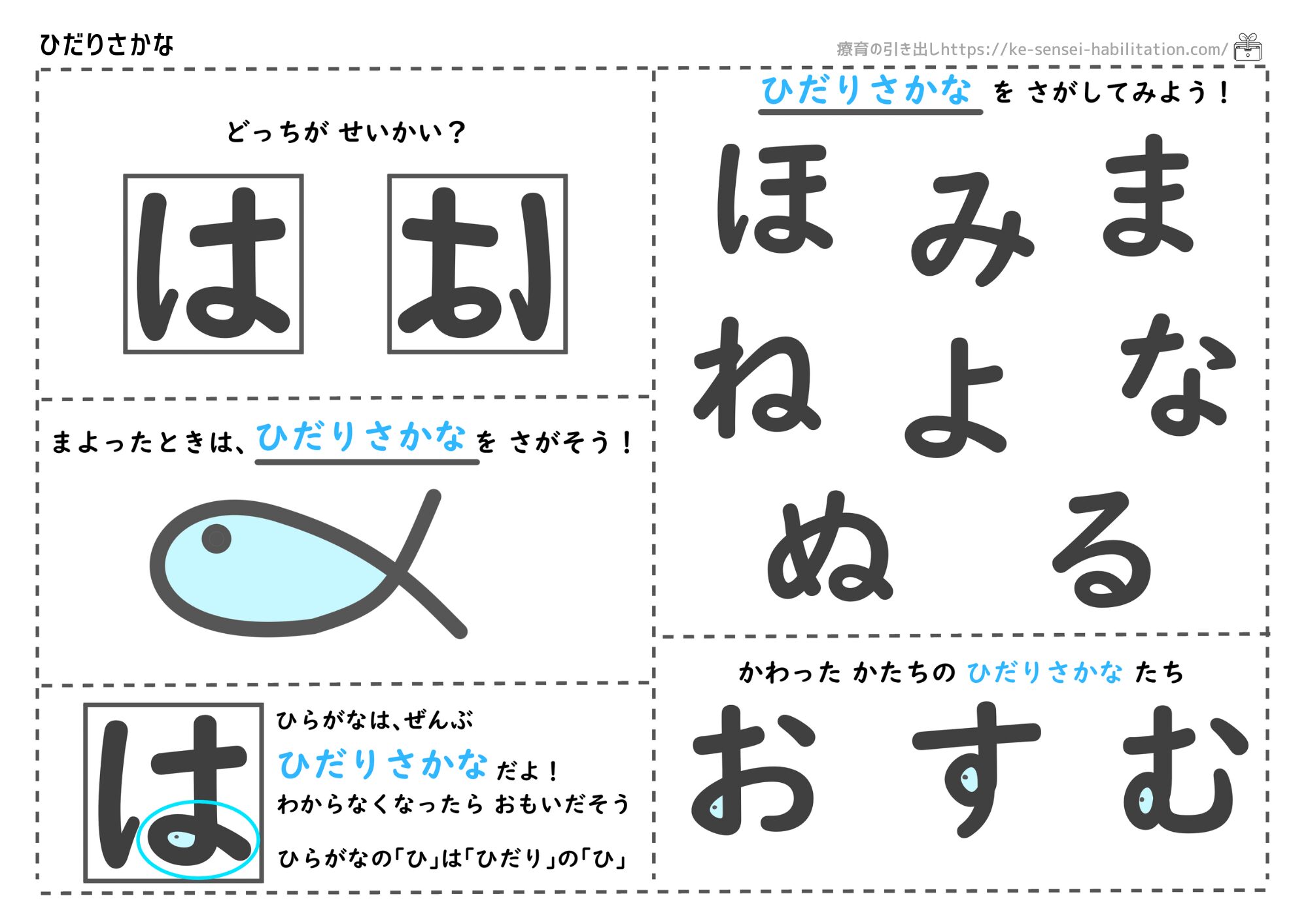 【鏡文字改善!】 ひだりさかな [文字・国語] 鏡文字を知識で修正してみよう