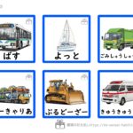 ①フラッシュカードとして:絵をみてすぐに単語を答える活動。スピード感やリズム感が重要。ひらがなを読んでテンポが悪くなる子にはひらがなを隠して提示。