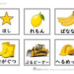 ①フラッシュカードとして:絵をみてすぐに単語を答える活動。スピード感やリズム感が重要。ひらがなを読んでテンポが悪くなる子にはひらがなを隠して提示。