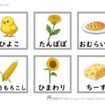 ①フラッシュカードとして:絵をみてすぐに単語を答える活動。スピード感やリズム感が重要。ひらがなを読んでテンポが悪くなる子にはひらがなを隠して提示。