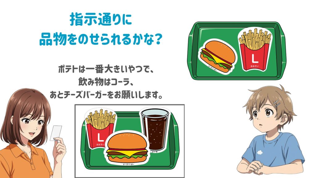 【聞き取り】 よく聞いてハンバーガー屋さん [聞き取り・指示理解] 指示を聞いて品物をのせよう