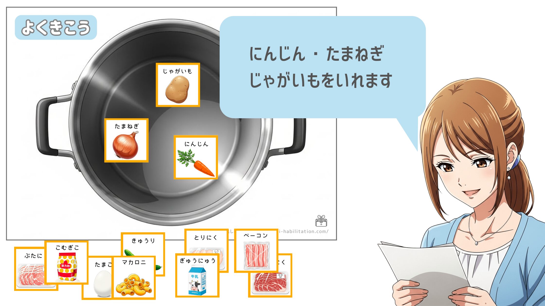 【聞き取り】 料理の材料よく聞いて [指示理解・聞き取り]