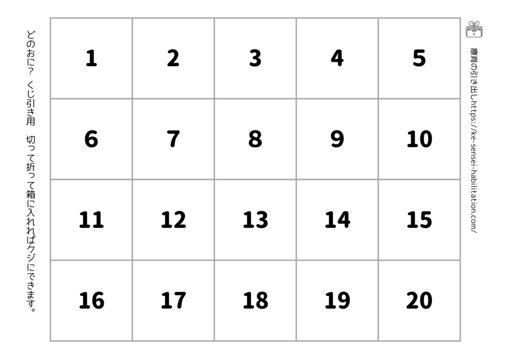 • くじ引きようプリントを使用する時には、事前に切って折り、箱などに入れておきましょう。