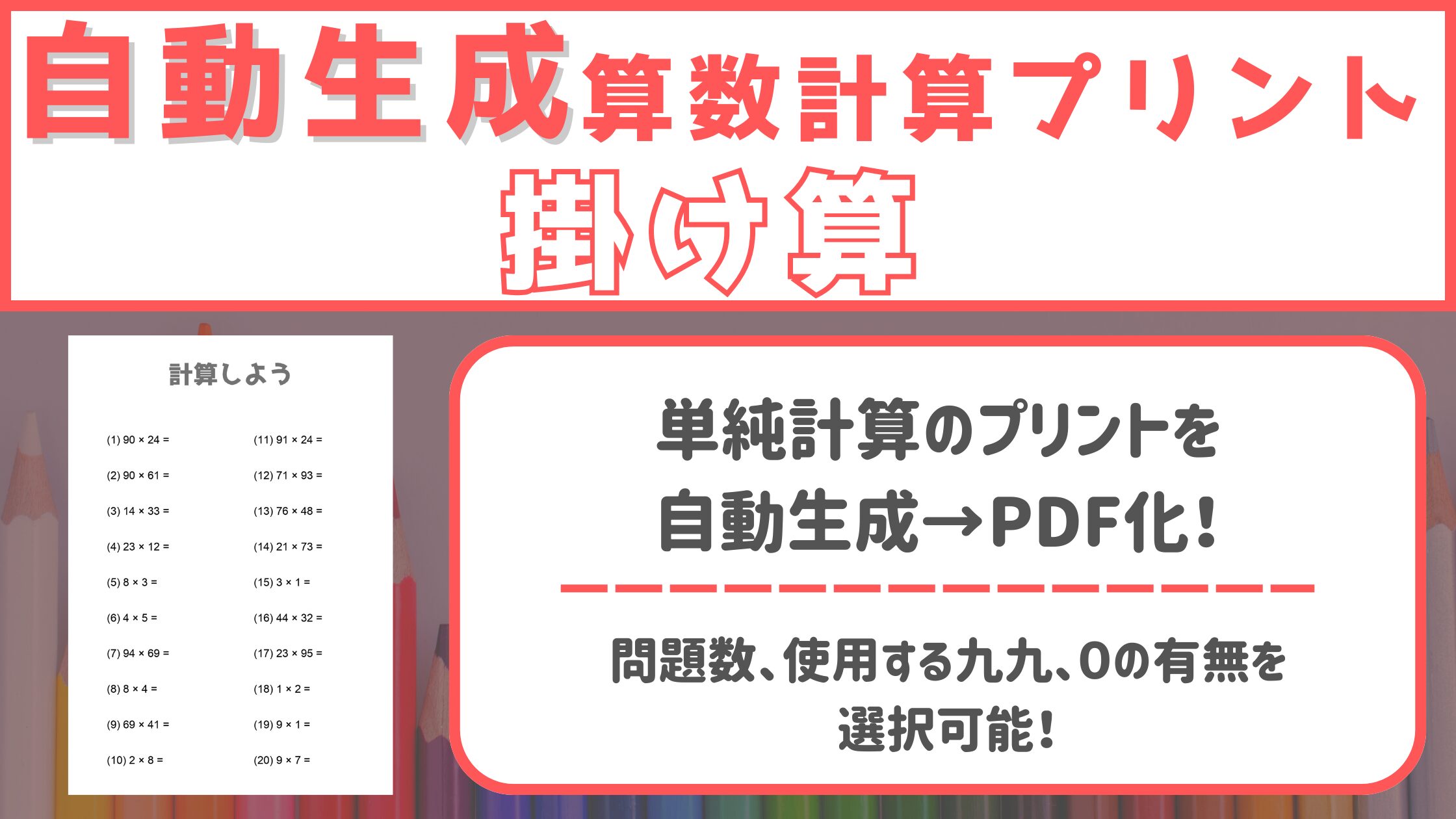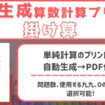 【計算プリント自動生成ツール】 掛け算 ke-sensei 掛け算プリント 10問 20問 1桁 2桁 3桁 0を含む プリント生成 PDFでダウンロード その他の自動生成ツールはコチラ▼ 足し算・引き算の計算プリントを自動で作る かけ算の計算プリントを自動で作る 準備中 準備中