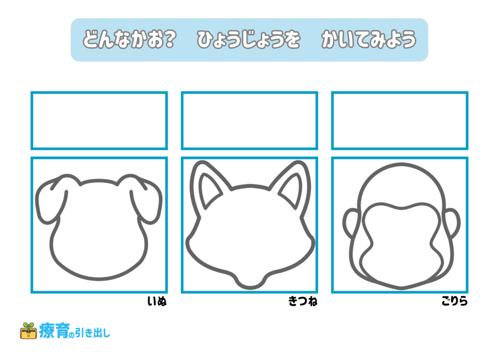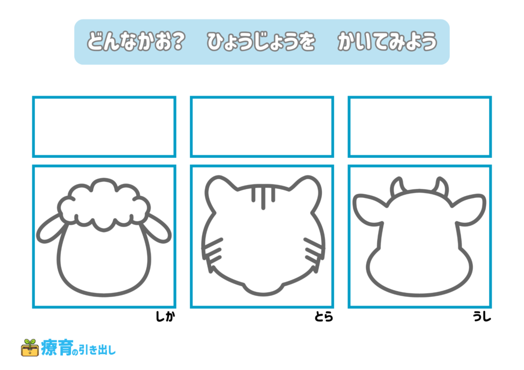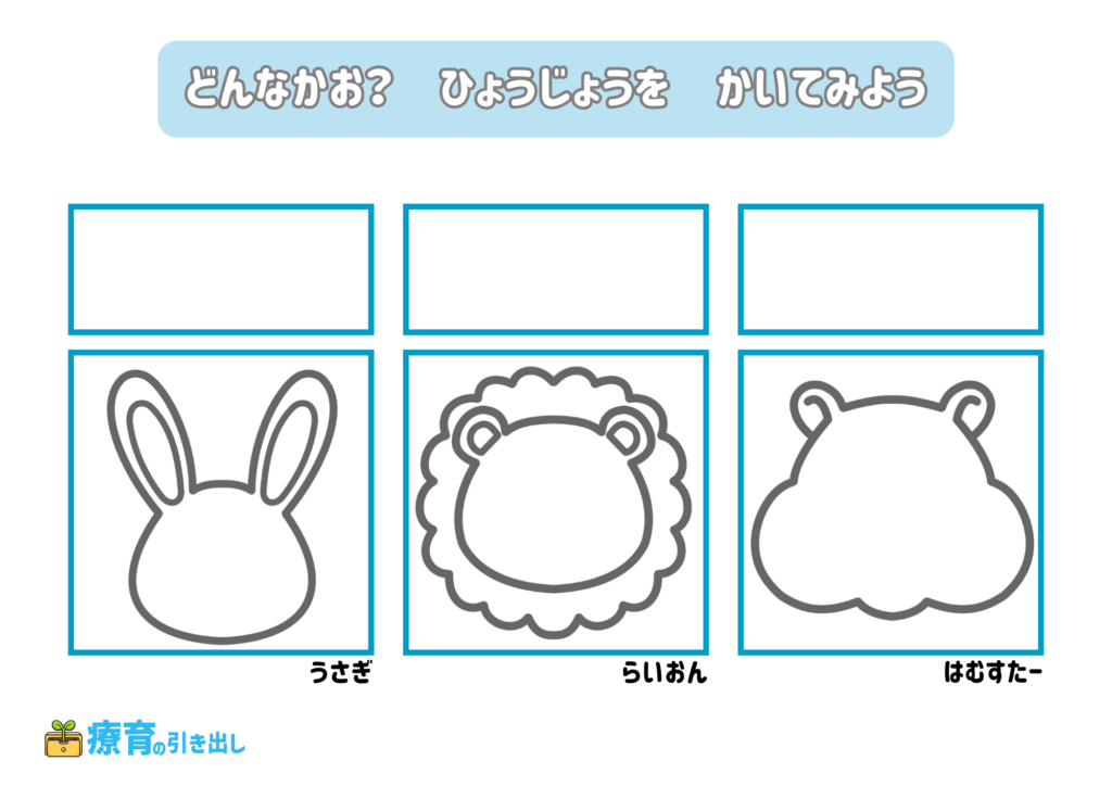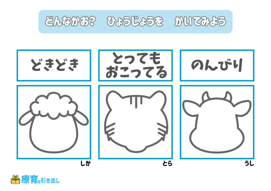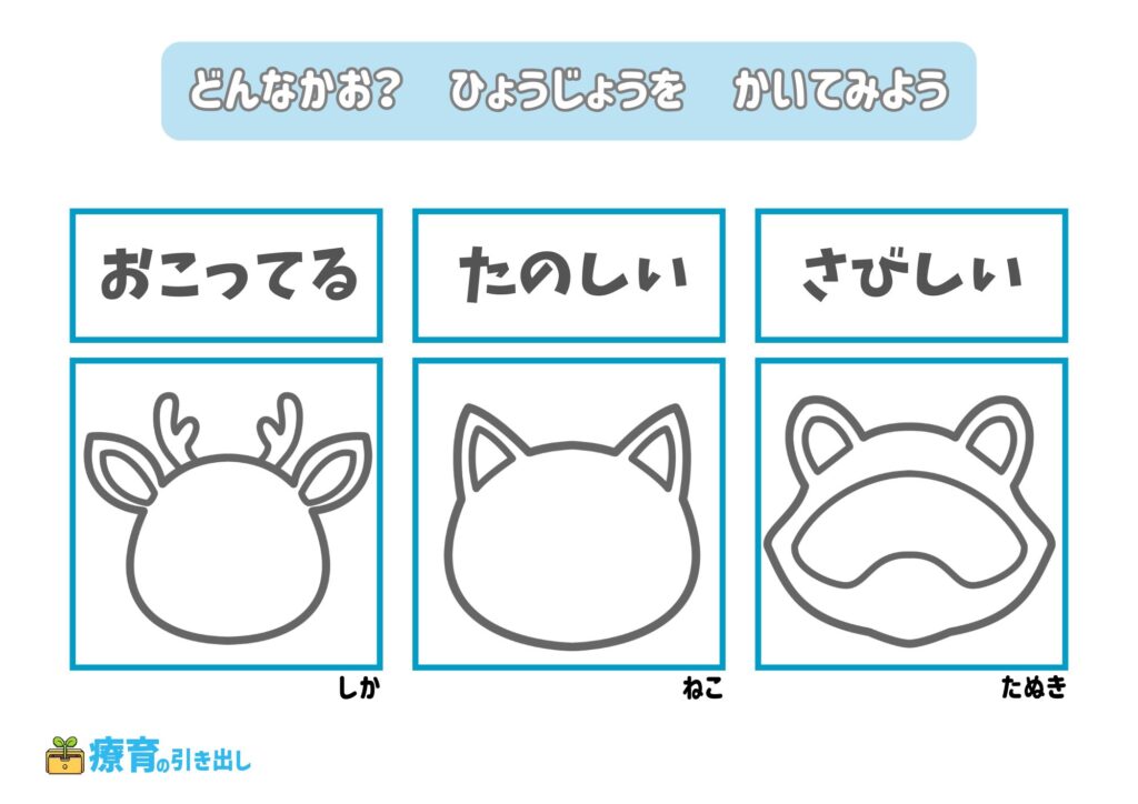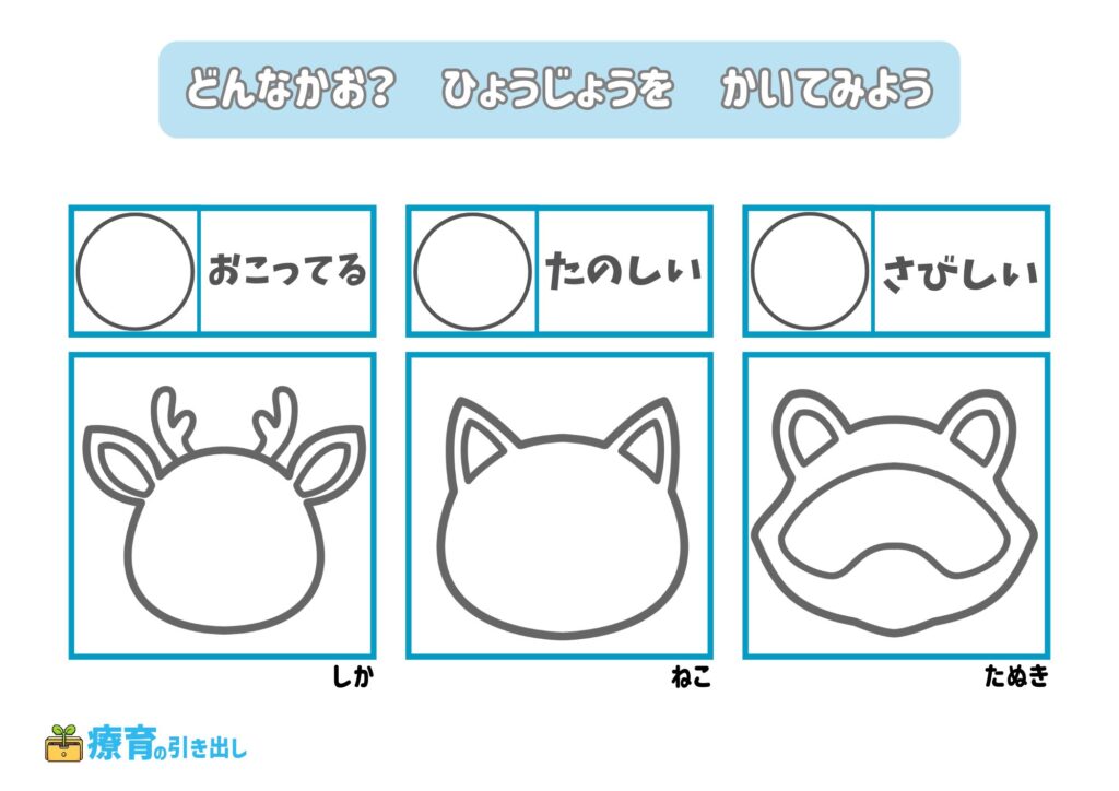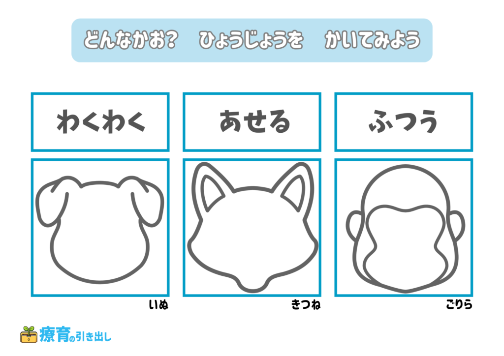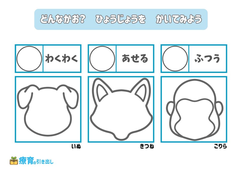 • 指定された気持ちの表情を描いてみましょう。