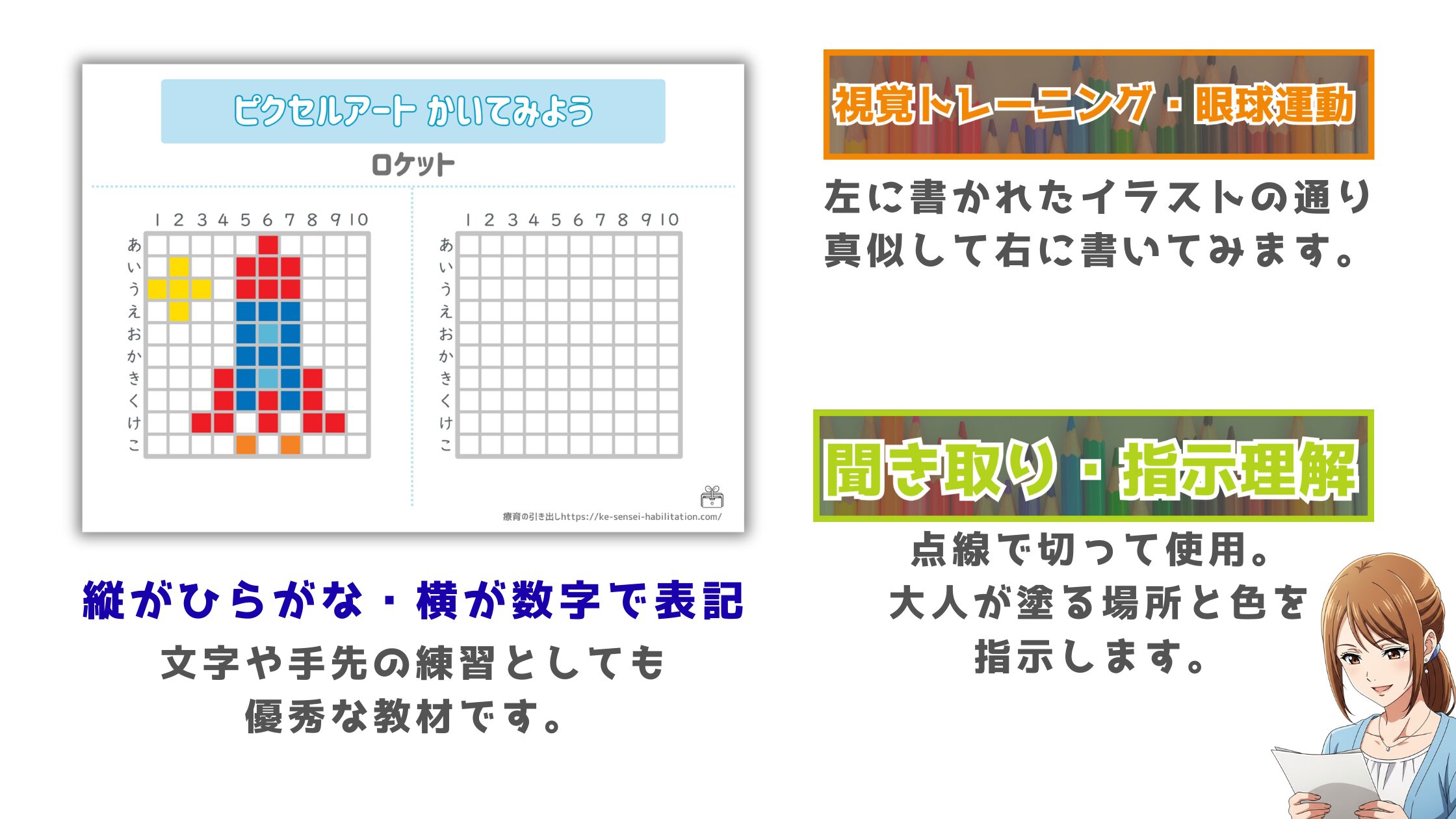 【視覚トレ・聞き取り】 ピクセルアートをかいてみよう ひらがな✖︎数字 [聞き取り・視覚トレ]