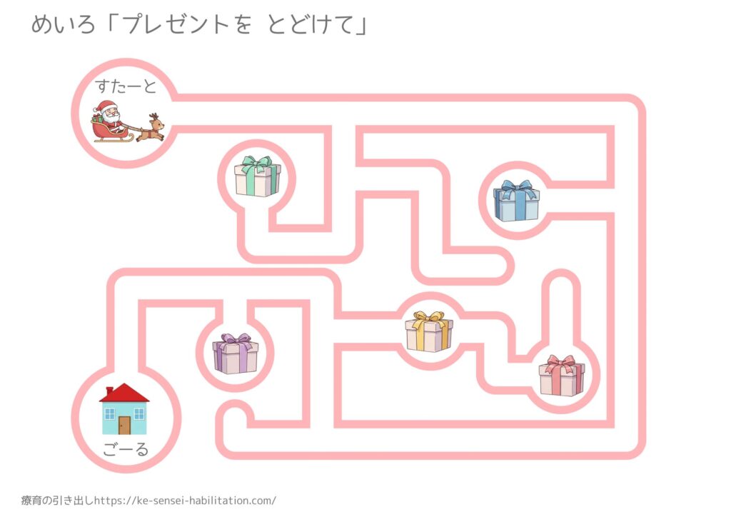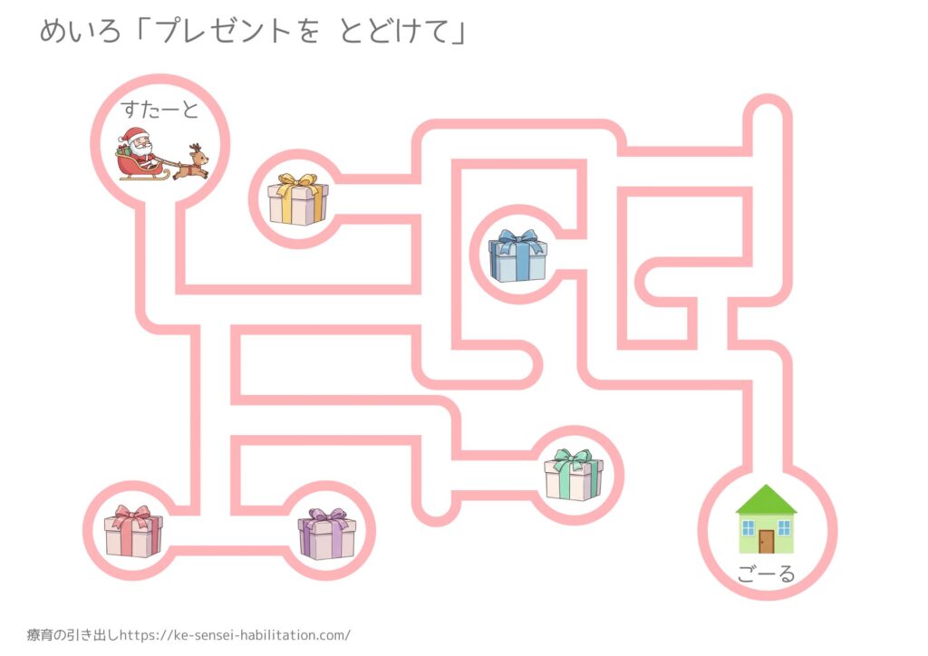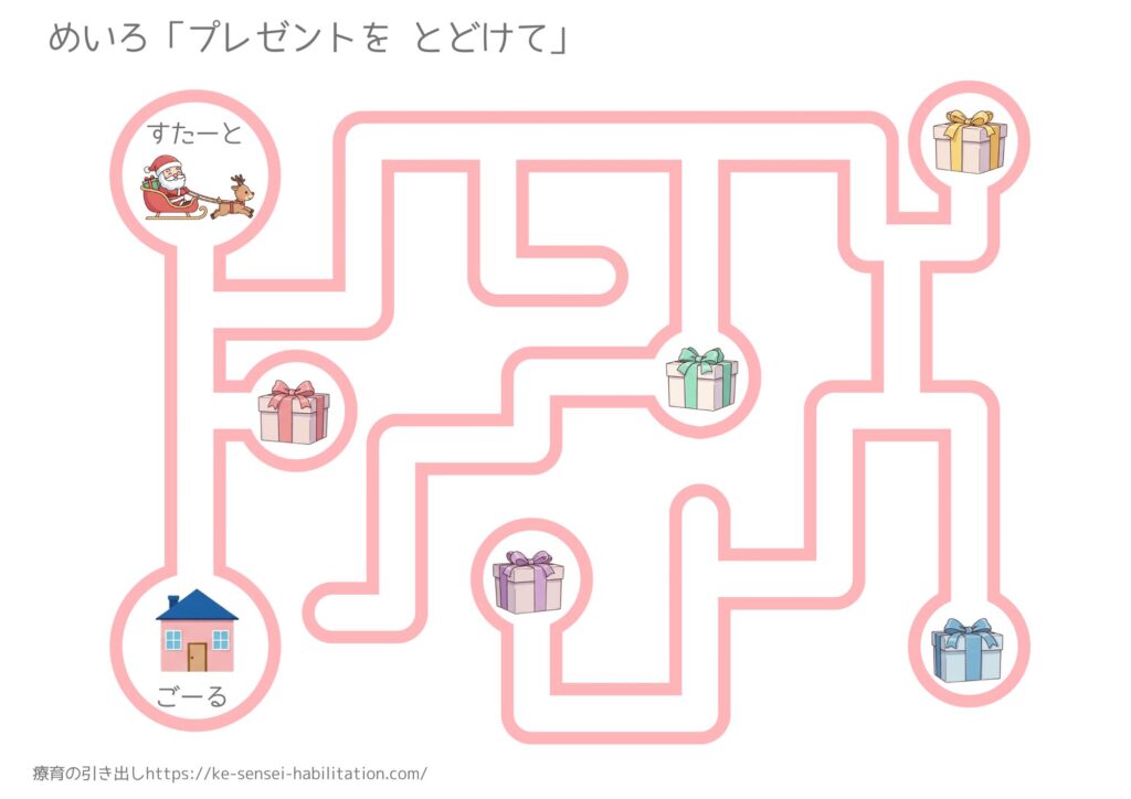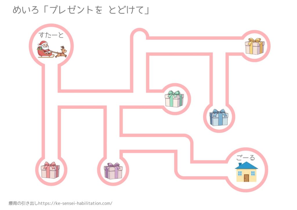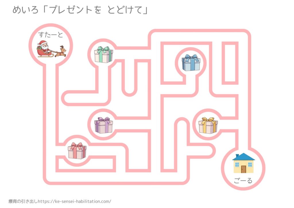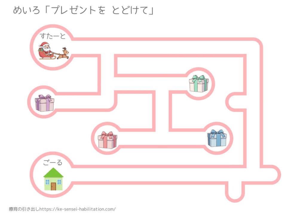 【運筆・迷路】 プレゼント集めて届けて 全3レベル18枚