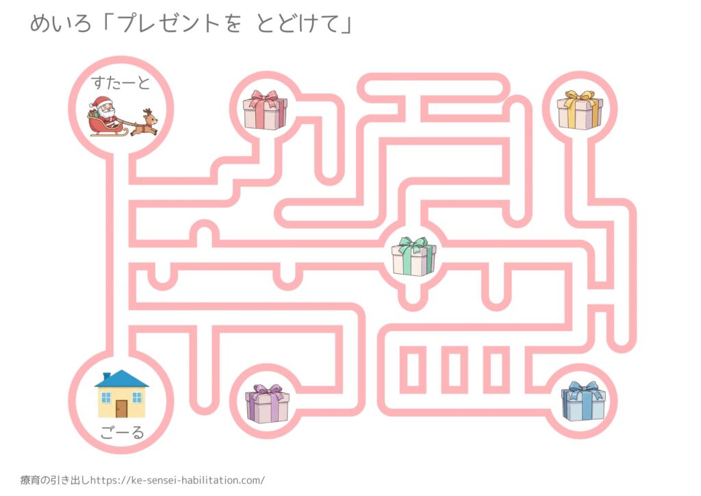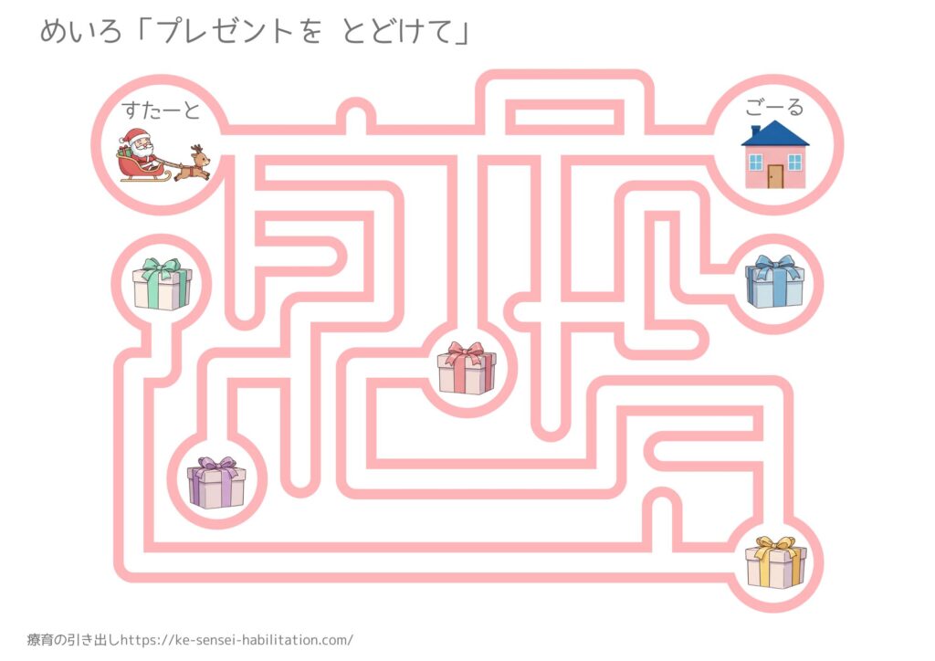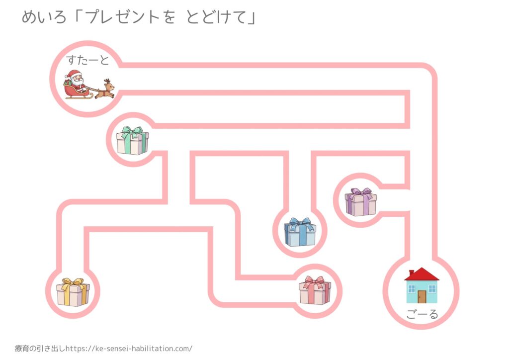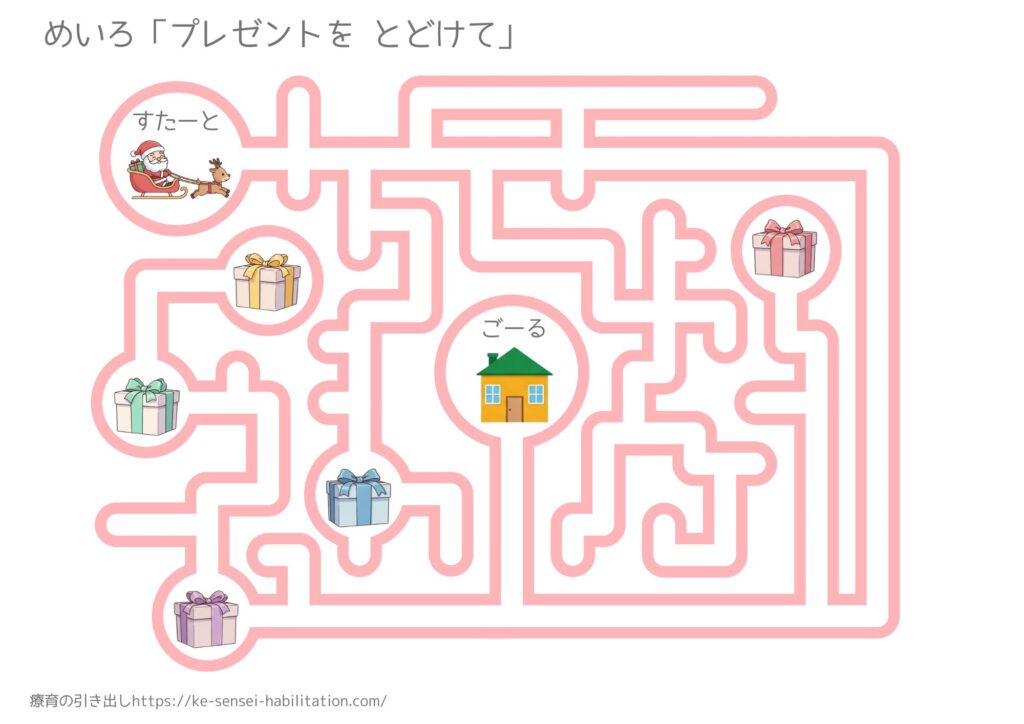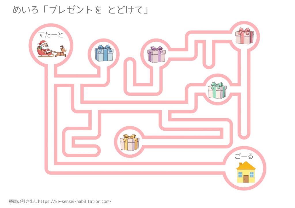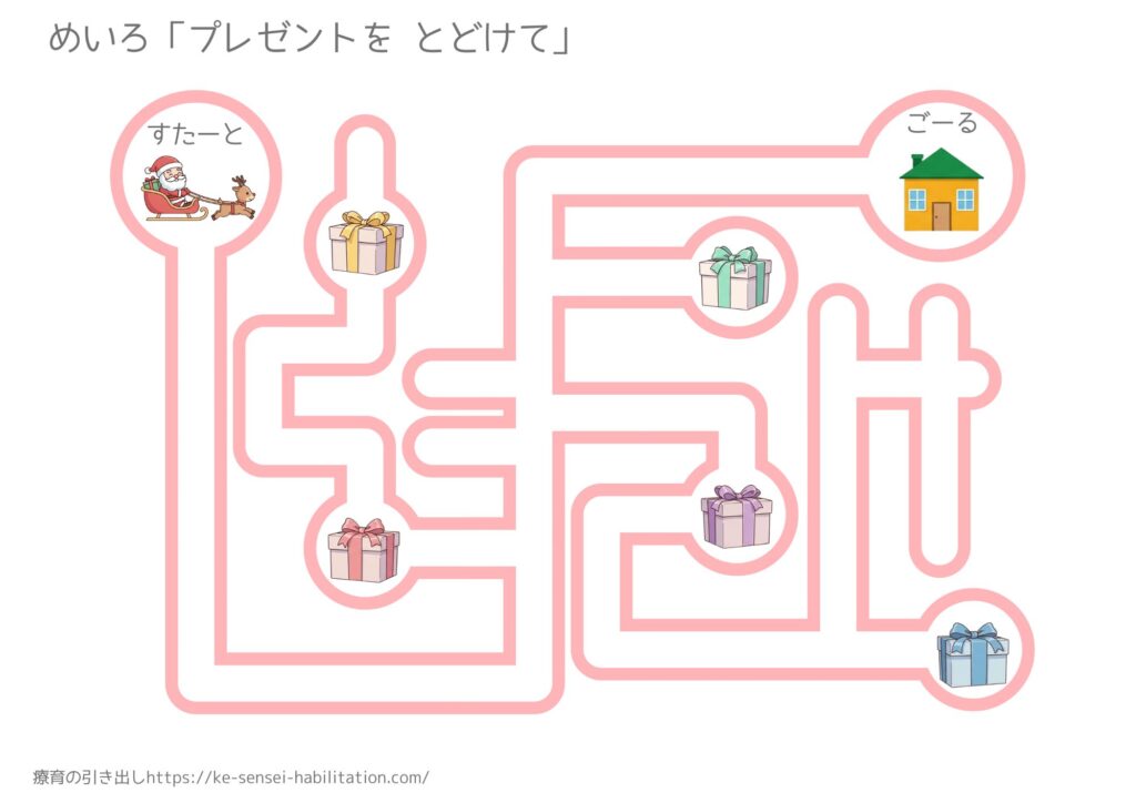 【運筆・迷路】 プレゼント集めて届けて 全3レベル18枚