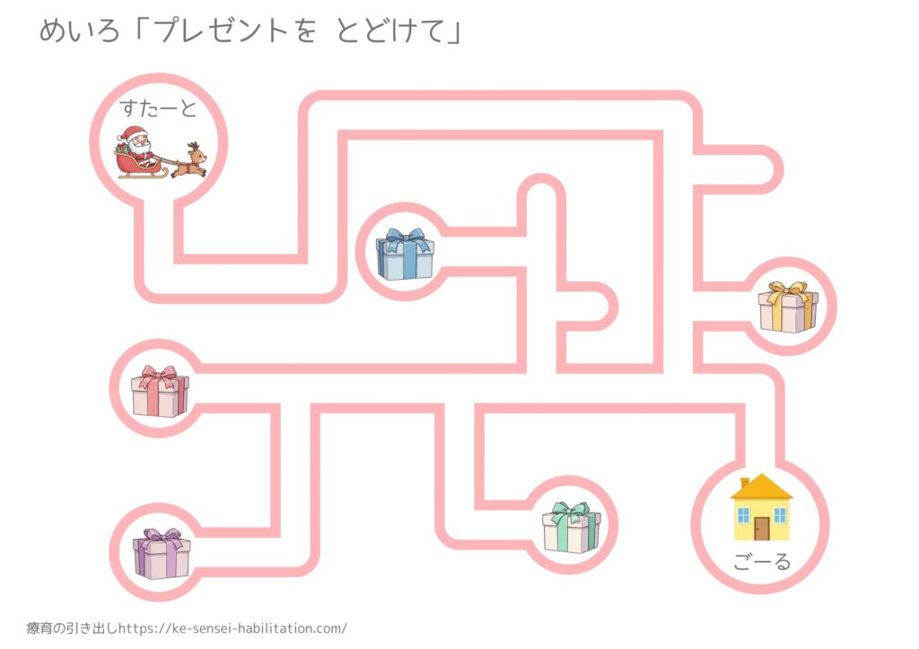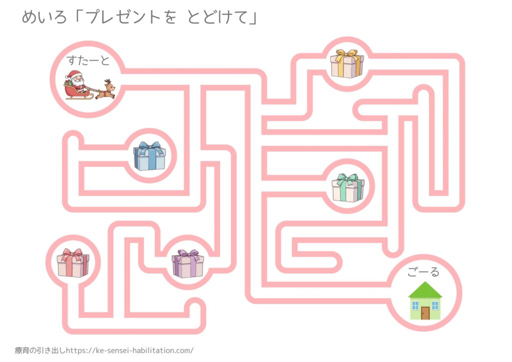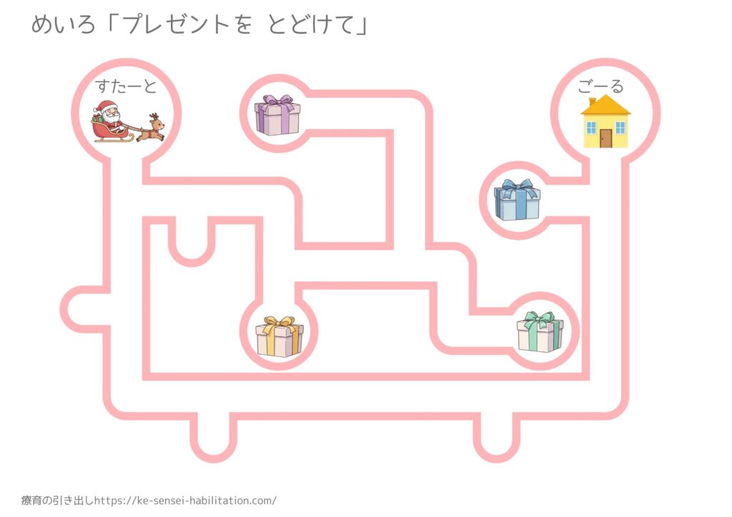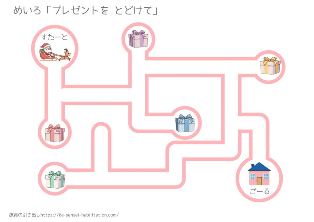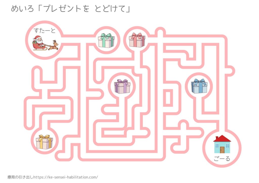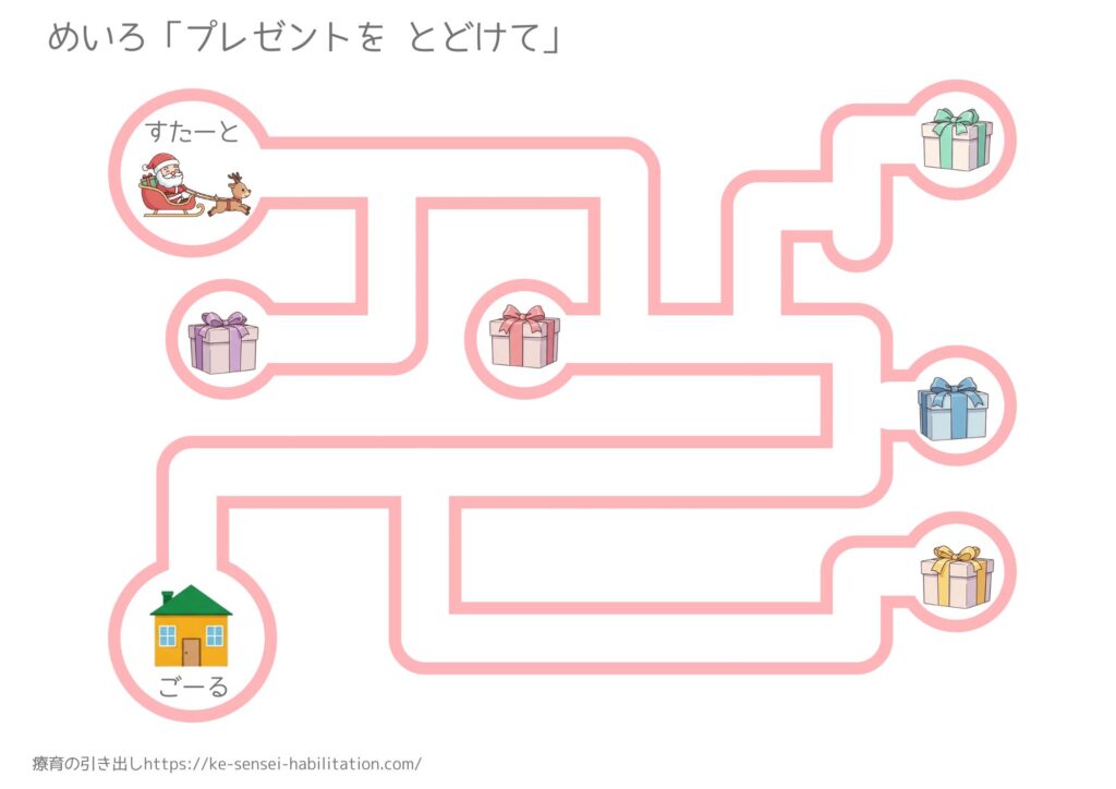 【運筆・迷路】 プレゼント集めて届けて 全3レベル18枚