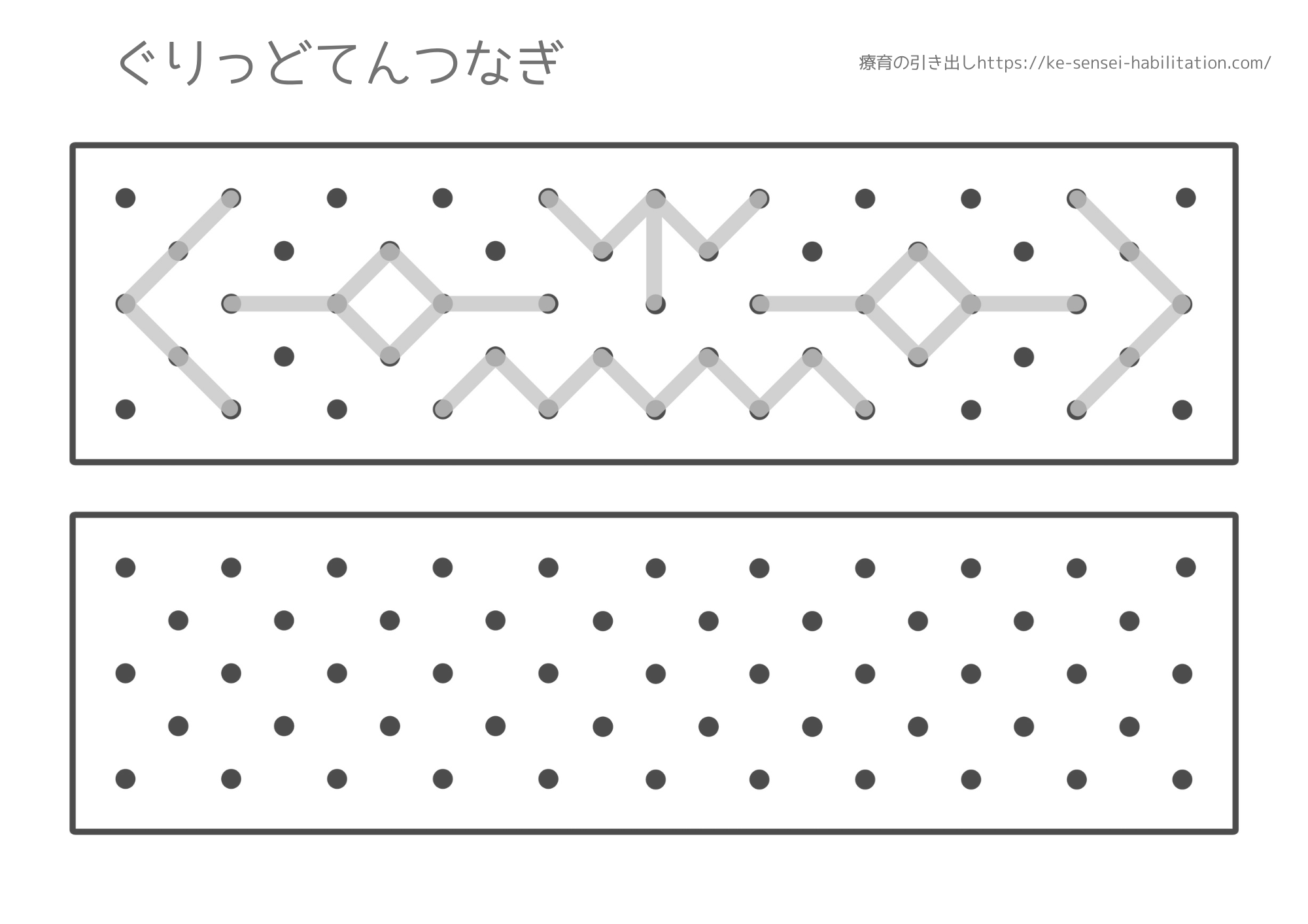 運筆の初歩を助ける教材です。図形の認知の発達は順番がしっかりと見えやすいので観察評価としても使用しやすいと思います。