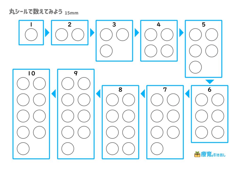 【丸シール&数】 丸シールで数えてみよう15mm [数・数字・手先・シール貼り] 全4パターン