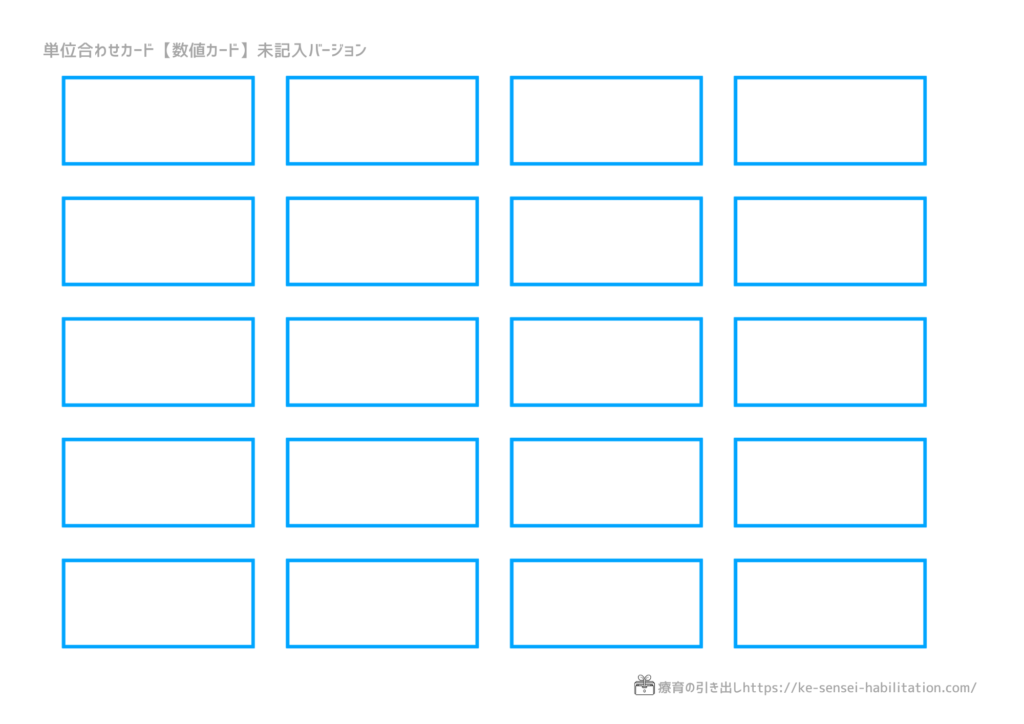 単位合わせカード 数値カード 未記入バージョン