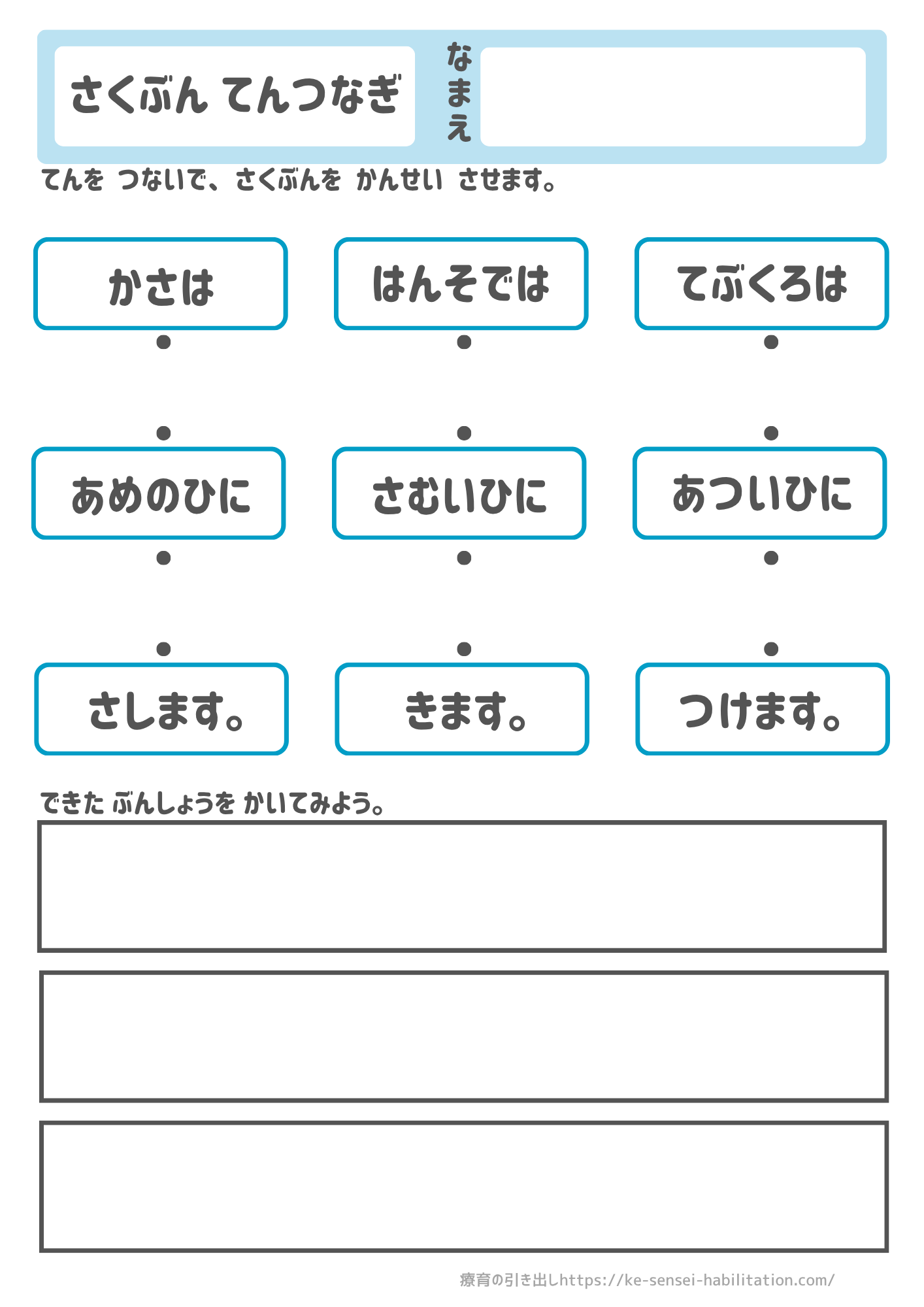 ご家庭・学校・児童発達支援・放課後等デイサービスでご自由にお使いいただけます。