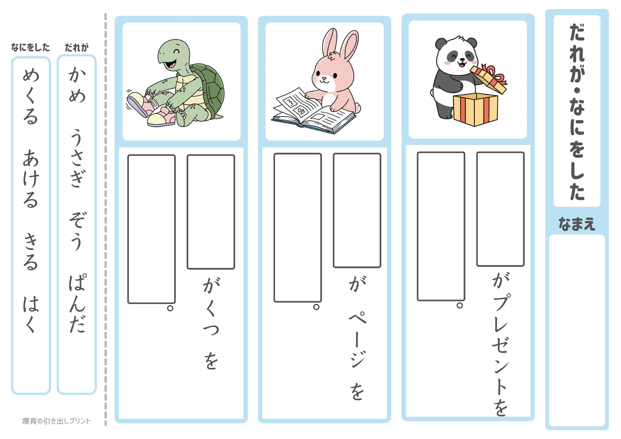 ご家庭・学校・児童発達支援・放課後等デイサービスでご自由にお使いいただけます。