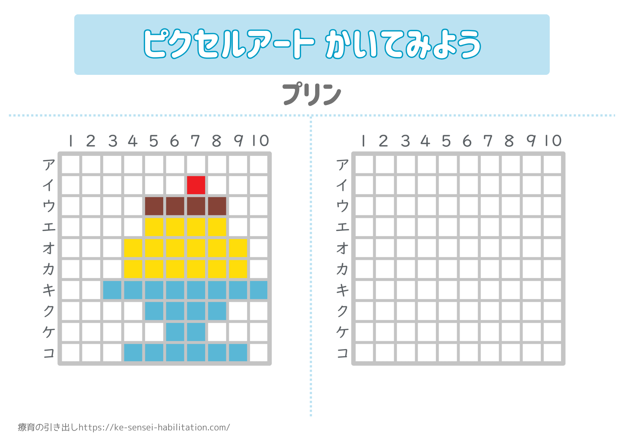 視覚情報を記憶する練習教材です。視覚だけで漠然と記憶するよりも言語化する(下三角、ズレ丸、ミニ四角下など)と記憶に定着しやすいお子さんもいます。どうやっても難しさがある場合はお子さんが覚えやすい方法を一緒に探してあげるのも手段ですね。