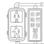 歩行者用信号機 ぬりえ 看板付き