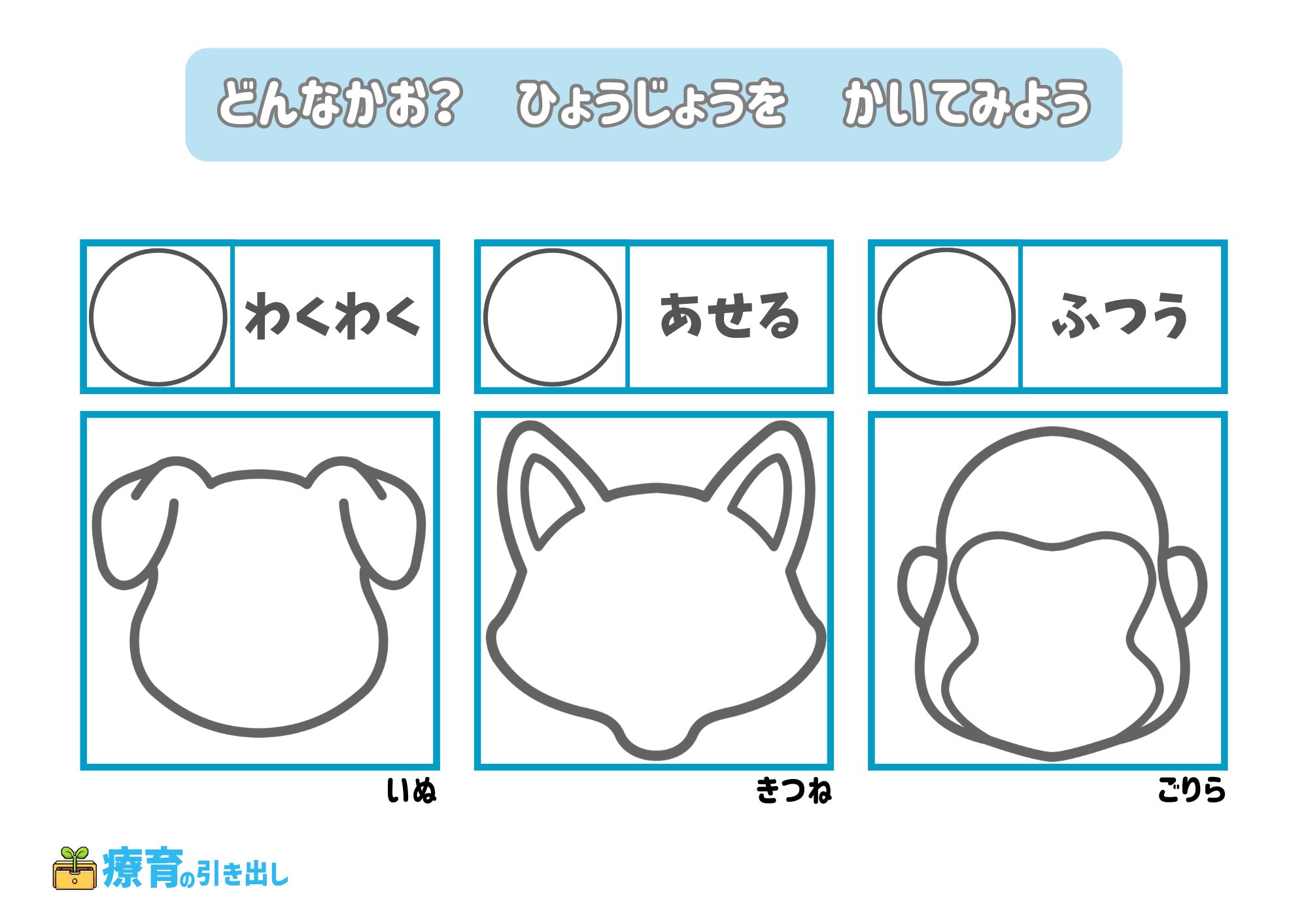 間違えて欲しくないのは、この課題ができないから、表情理解ができないとは思って欲しくはないです。相手の表情を読み取る力が十分に備わっていたとしても、絵が描けない、絵が苦手なだけかもしれません。とくに、キャラクターや人物の表情を描くのには、経験がものをいう場合も多くあります。なので逆に、この課題ができたから表情理解ができているとも思わず、多方面から対人コミュニケーションの苦手さの原因を探してみましょう。