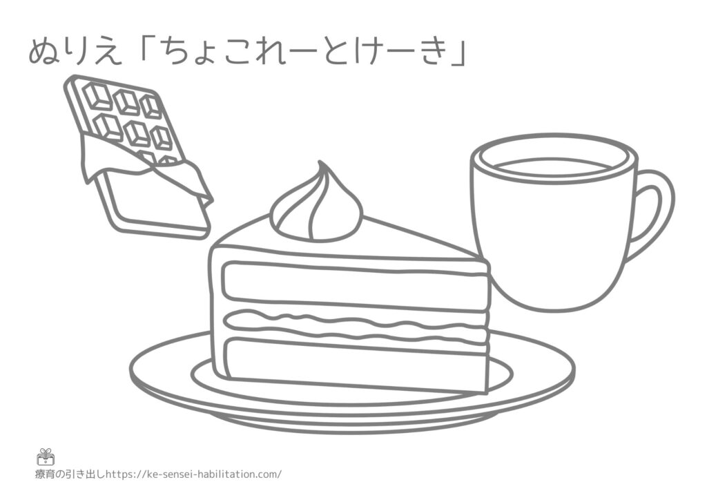食べ物(おやつ・スイーツ) ぬりえ チョコレートケーキ2