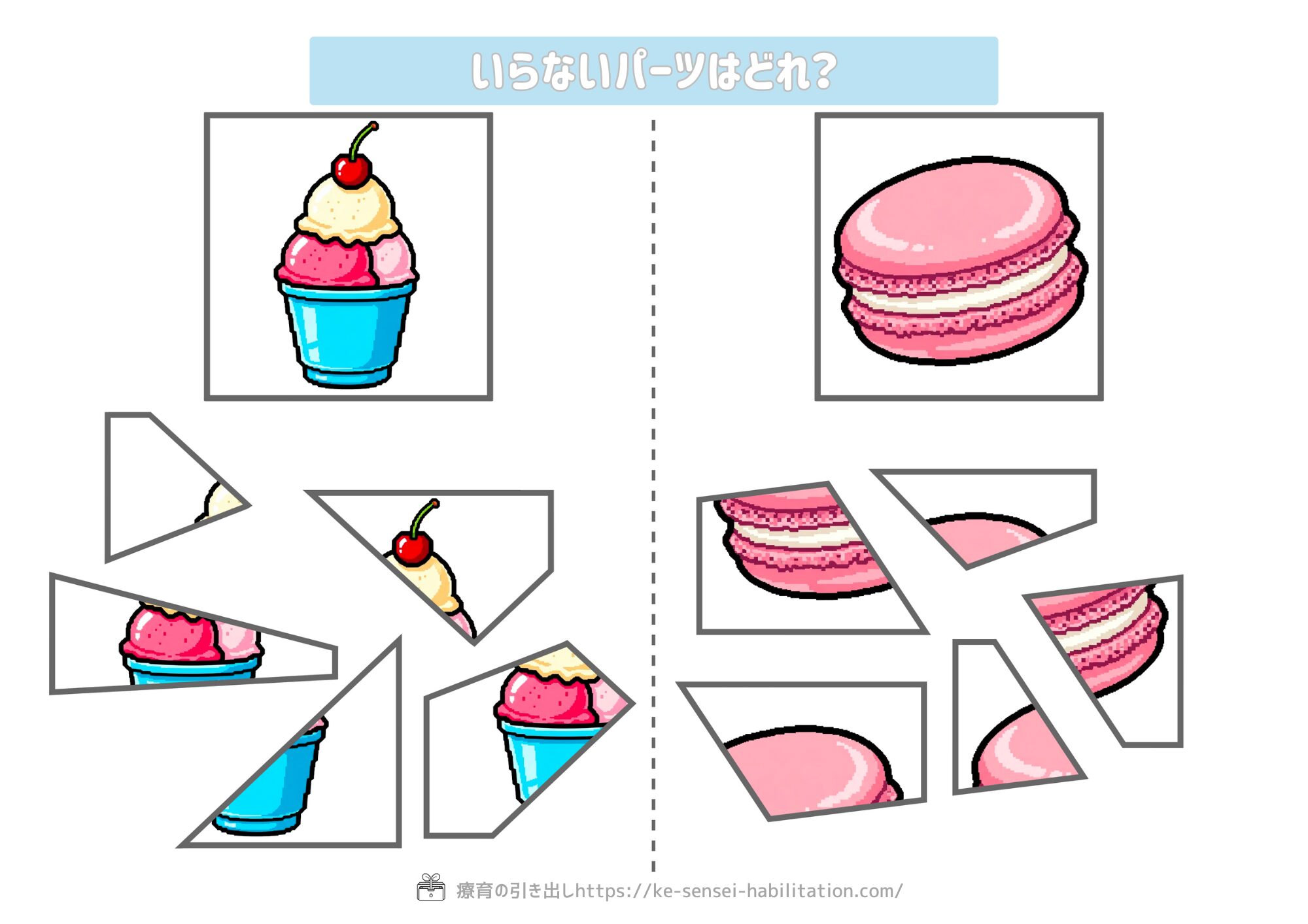 トークンは外発的動機づけになるから「やらない方がいい」ということも一理ありますが、私は先の見通しが持てた方が頑張れるとおもうのでこのように最後がわかりやすいようなトークンを用いることが多いです。ただしデメリットとしては難易度を必ずその子が達成できるものでないと途中で終わって失敗体験につながることです。その子が最後までできると判断した場合にのみ使用してください。