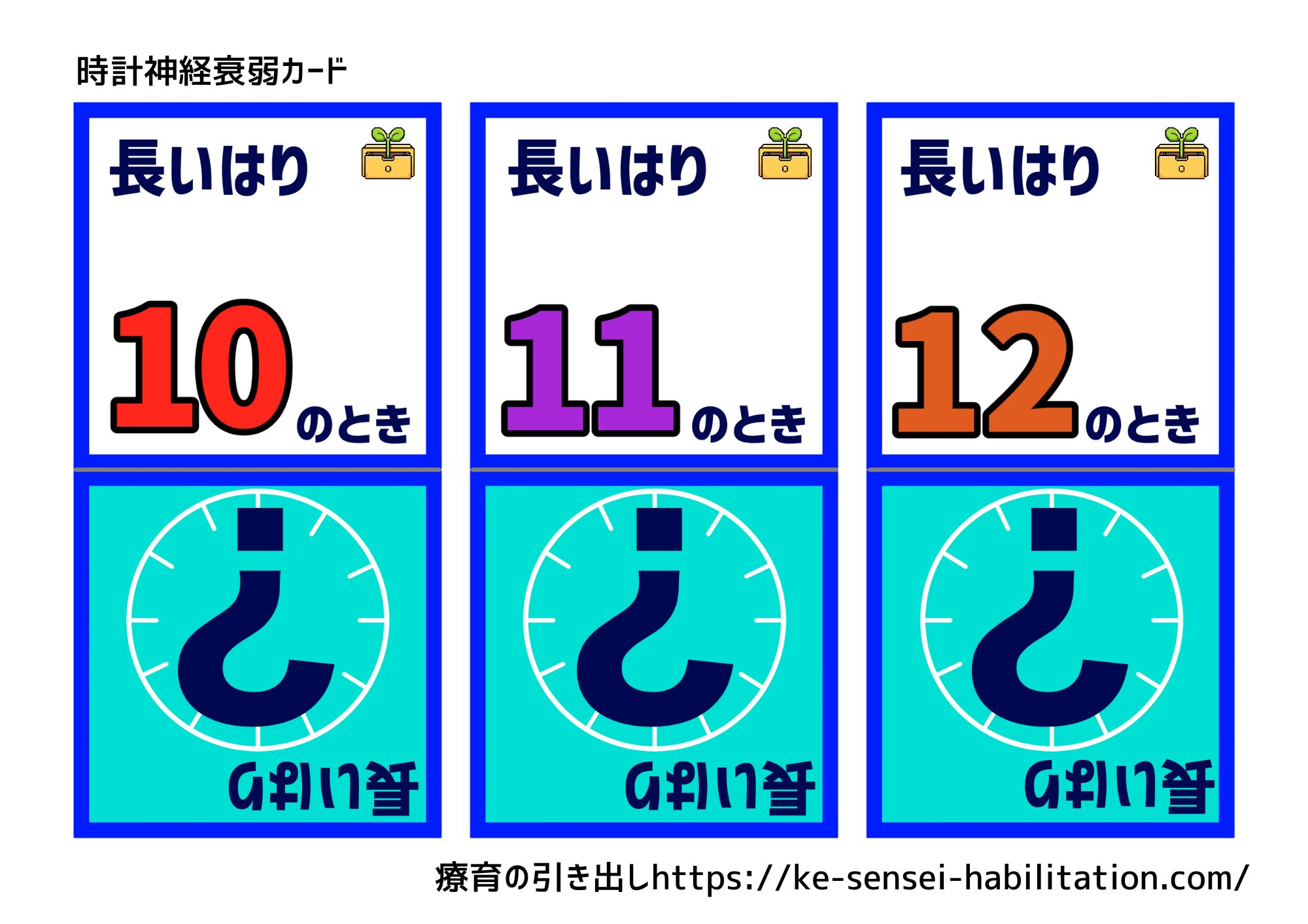 時計神経衰弱カード 【長い針が】白黒1