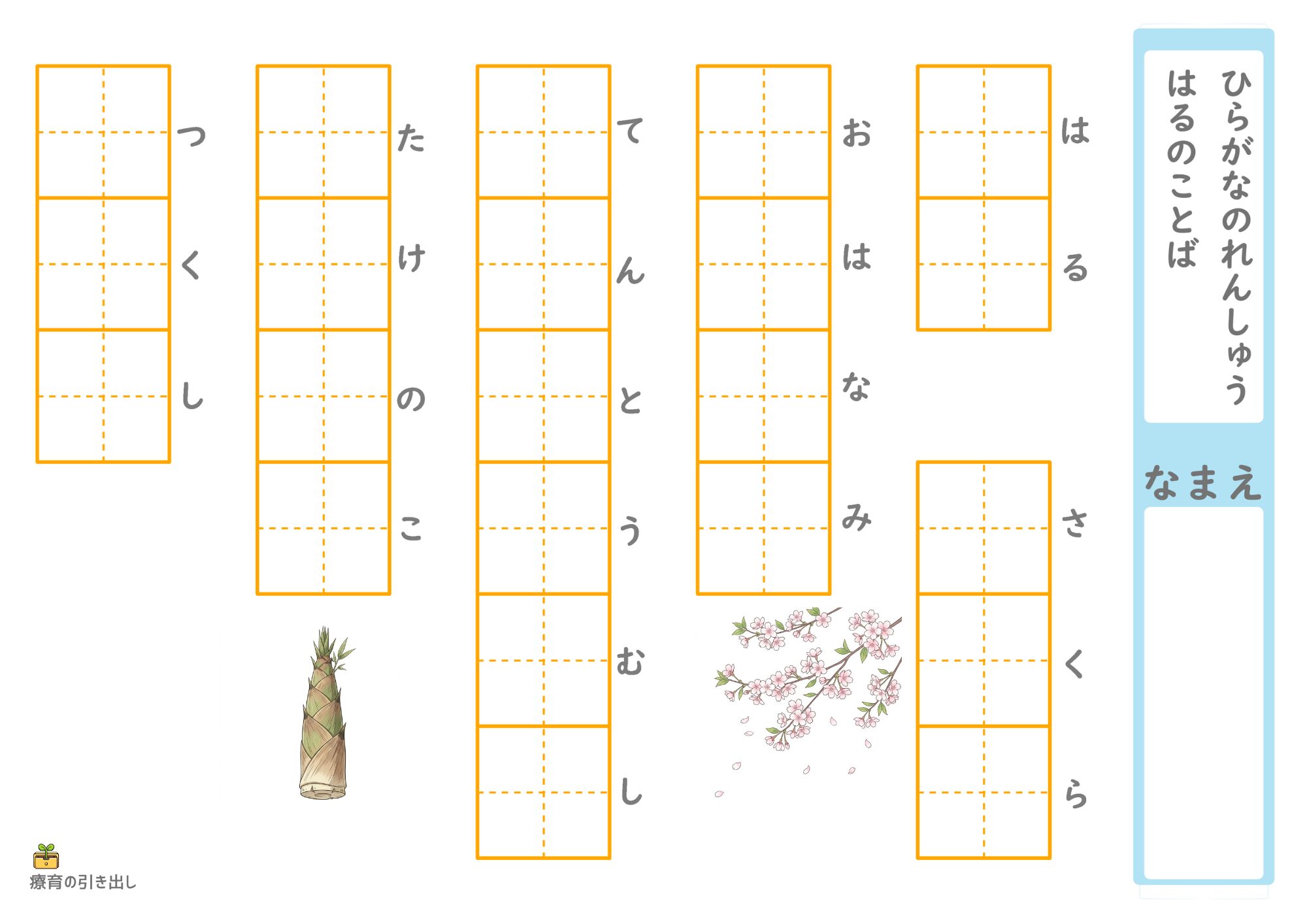 【季節の教材】 春の言葉でひらがな練習 [文字・言葉] 語彙力をつけながら平仮名練習