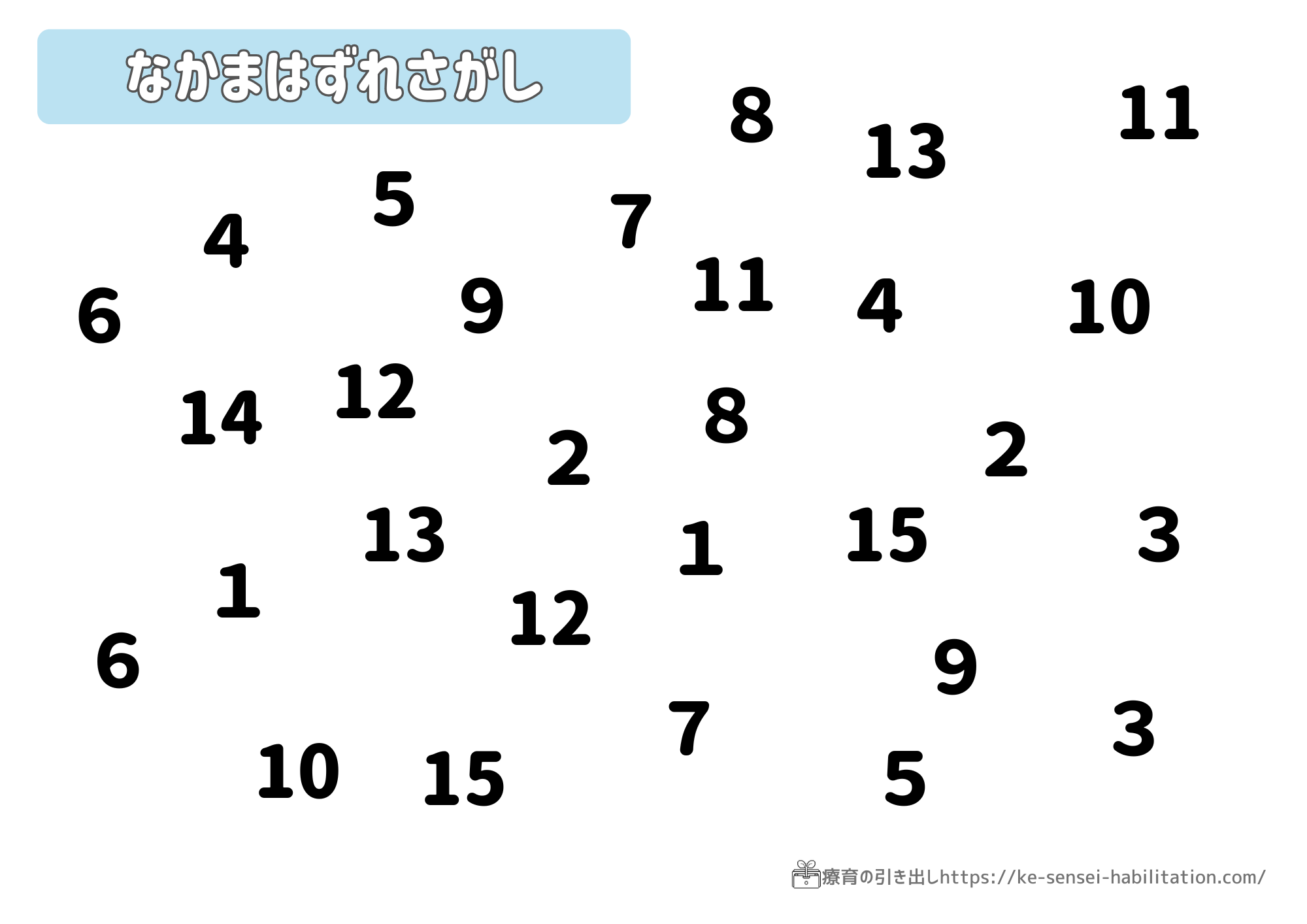 【数字】 なかまはずれさがし 数字 [数字・眼球運動・ワーキングメモリ]
